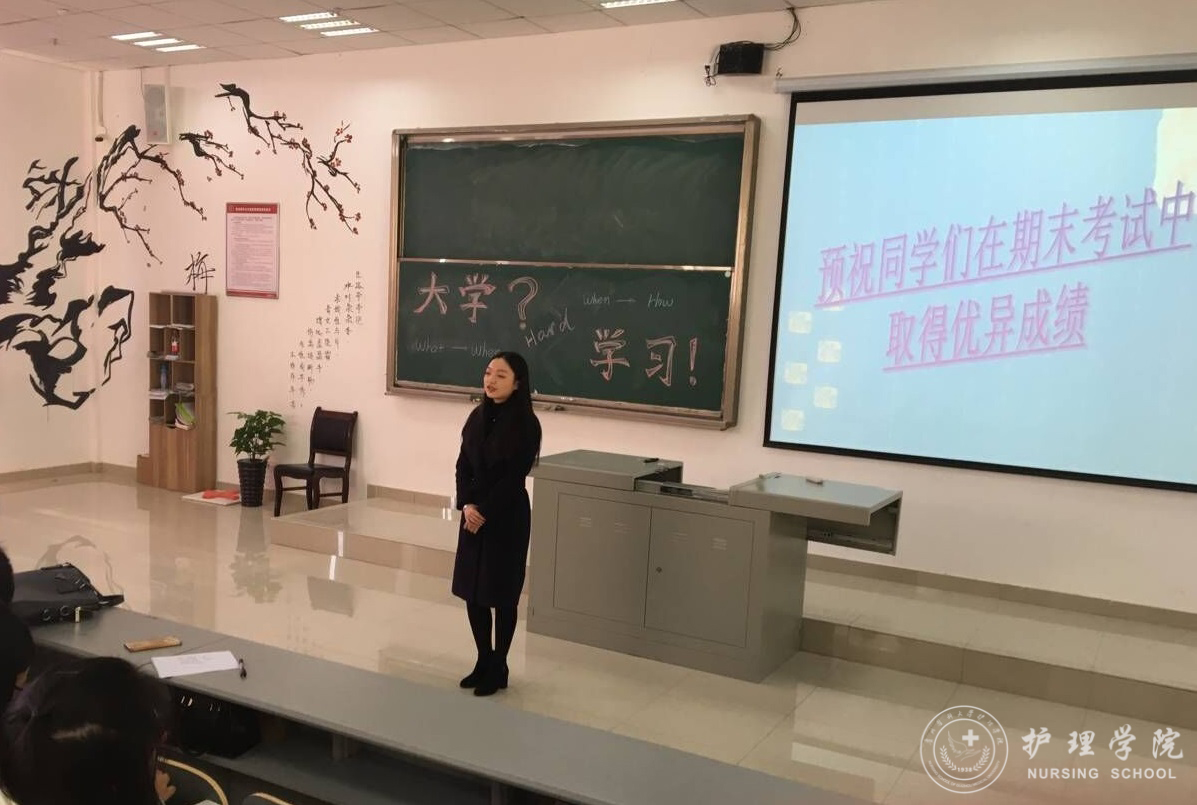 11月27日中午,allwincity万象城官方网站在南校区7406教室开展了“定目标、抓学风、稳思想”主题班会活动。班会由辅导员马景瑶、2017级甲班崔玉琪主持,班主任吴俊主讲,2017级护理甲班全体同学参加。