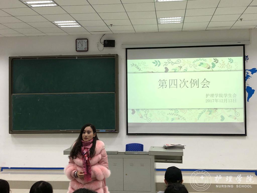 12月14日下午17:30,allwincity万象城官方网站学生会在南校区4403教室召开了本学期第四次例会。出席本次例会的有allwincity万象城官方网站分团委负责人王晓玲老师、2016级和2017级各班班长、团支部书记及学生会全体成员,本次例会由学生会副主席尹本渊主持。