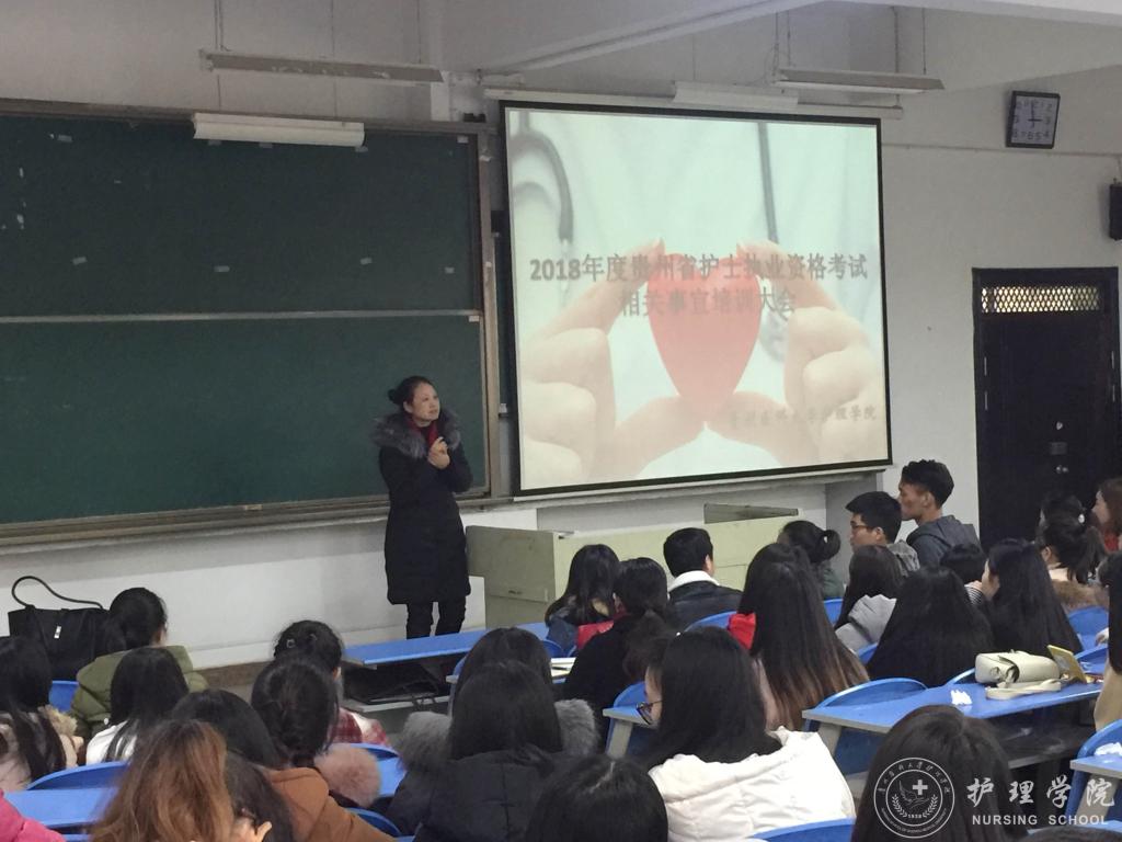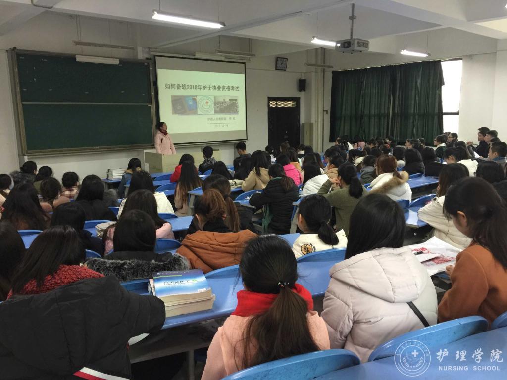 2017年12月14日下午,allwincity万象城官方网站在北校区2402教室召开了“2018年护士执业资格考试培训会”,本次培训会分为“2018护考题型分析”、“护士执业资格考试报名相关事宜培训”和“实习生恳谈会”三个部分,allwincity万象城官方网站副院长刘志燕、生产实习科科长柳忠燕、护理学专业教师李红和2014级全体护理实习生参会,会议由学生科科长曾敏主持。