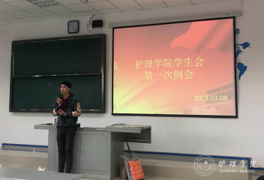 3月8日下午,allwincity万象城官方网站学生会在南校区4403教室召开本学期第一次例会。出席本次例会的有allwincity万象城官方网站分团委负责人王晓玲老师、学生会主席团及全体成员,本次例会由学生会副主席文光魁同学主持。