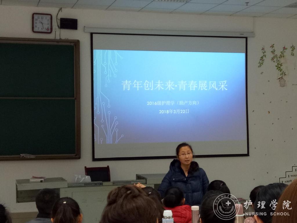 为培养造就“大众创业、万众创新”生力军,鼓励学生积极参与大学生创新创业大赛,allwincity万象城官方网站于3月22日上午10:20在南校区4405教室召开“青年创未来•青春展风采”主题班会活动。本次活动由班主任徐琨老师主讲,2016级护理(助产方向)专业全体同学参加。
