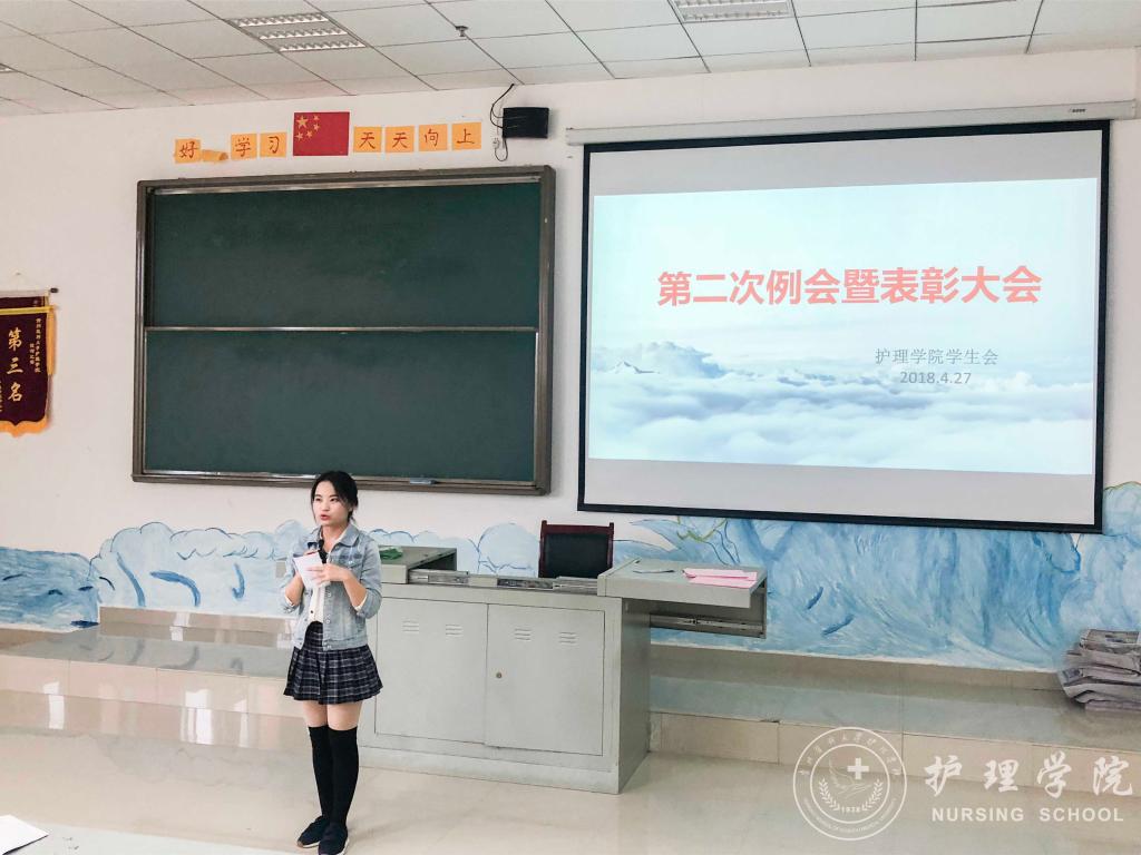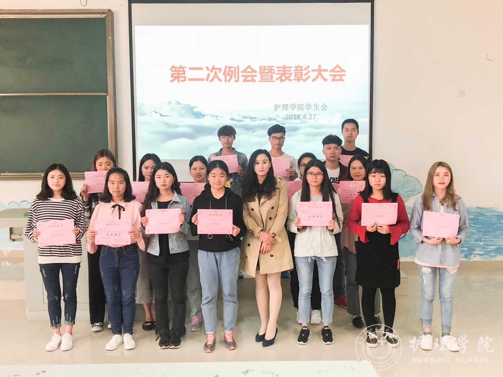 4月27日下午,allwincity万象城官方网站学生会在南校区4404教室召开了本学期第二次例会暨表彰大会。本次例会由学生会副主席刘妍同学主持,allwincity万象城官方网站分团委负责人王晓玲老师、学生会主席团及全体成员参加了会议。