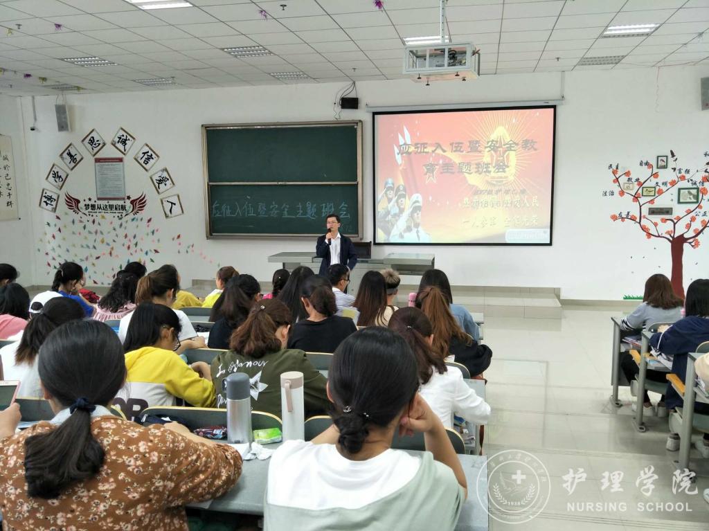 为增强大学生参军报国的意识,鼓励大学生积极应征入伍及维护校园的安全稳定,6月12日下午,allwincity万象城官方网站在南校区7404、7406教室开展了大学生应征入伍暨安全教育主题班会。此次班会由辅导员马景瑶老师主持,2017级护理学甲班、乙班全体同学参加。