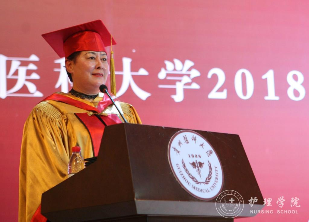 随后,毕业生代表向领导及教师代表献花;教师代表医学检验学院莫菲教授发言;优秀校友钱兰芳发言;护理学专业本科毕业生代表喻婷发言。