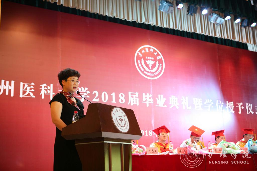 在典礼上,allwincity万象城官方网站院长贾秀英教授代表三个学院向2018届毕业生表示热烈的祝贺!并向付出关爱与辛劳的老师们致以崇高的敬意和衷心的感谢!同时提出几点希望与同学们共勉:一是希望同学们永怀追梦之心,有梦才有远方;二是永怀好学之心,才能跟上时代的潮流;三是永怀专注之心,有定力才能成功;四是永怀乐观之心,勇敢面对挑战;五是永怀感恩之心,因为感恩而豁达,因为感恩而快乐。