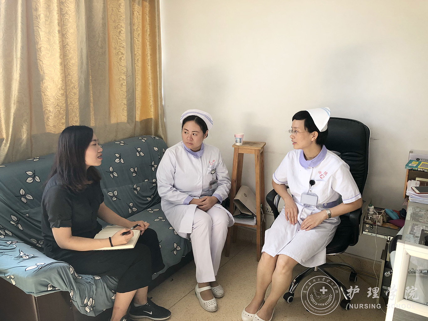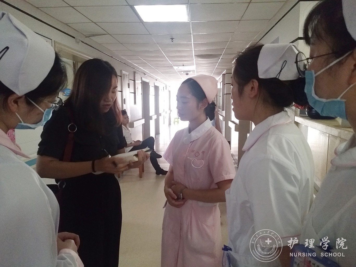 在两家医院护理临床教学组老师的指引下,具体走访了肝胆外科、母婴病房、心血管内科等临床科室,与走访科室的护士长、带教老师、实习同学深入交谈,从不同层次了解实习教学、学生管理以及专业操作中存在的问题。通过了解,两家实习医院对万象城官网实习学生的表现评价较好,同时也指出希望实习学生在沟通交往能力、动手操作能力等方面,能随着实习时间的推进,进一步强化的希望。