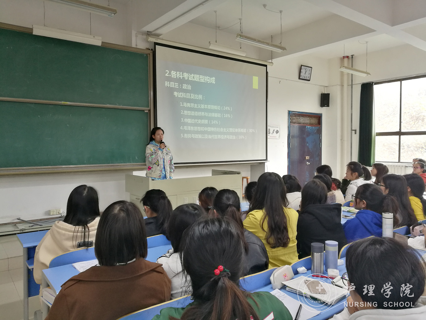 首先,曾敏对两位研究生代表表示了欢迎,并向同学们简要介绍了两位同学的考研经历。接着,方雯跟大家详细介绍了护理专业考研科目、各科考试题型构成,同时结合自己的经历给学弟学妹们讲解了考研过程中的注意事项、复习时间分配、心态调整等问题。刘知音分享了自己工作四年后再考研的经历,并从如今的考研现状、本科生和研究生所学内容以及今后发展的比较来鼓励同学们把握时机,勤奋学习。最后,曾敏老师表达了对两位同学的感谢并做出总结,她希望同学们一是要珍惜现在,机会只会留给有准备的人;二是要求同学们制定出自己的计划,持之以恒,努力去实现自己的考研梦想。