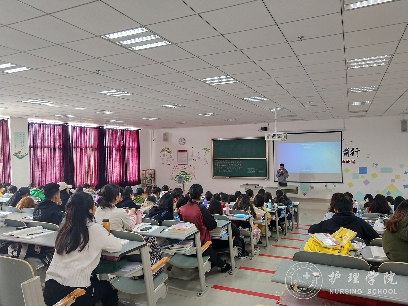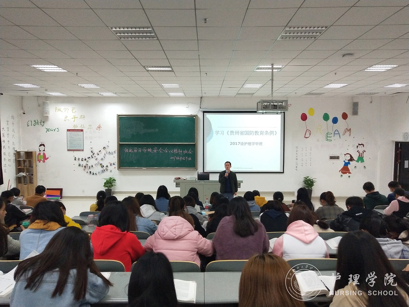 2016级全体同学以"和平年代是否需要国防"为主题积极探讨学习国防教育法的重要性,并发表自己的意见。2017级全体同学以“关注国防、热爱国防”为核心认真学习了《中华人民共和国国防教育法》、《贵州省国防教育条例》,并列举相关案例,提出当前任务是学好知识,增强国防观念,为中国崛起而奋斗。2018级全体同学则从我国的国防建设历程以及所取得的成就进行学习,让同学们了解了开展国防教育的重要意义,懂得了“落后就要挨打,少年强则国强”的道理。