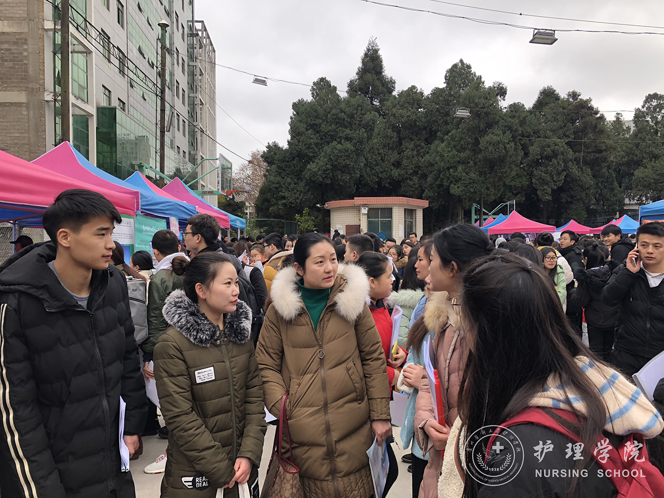 12月7日,冬季大型校园招聘会,吸引了中山大学附属第八医院、深圳市龙岗区妇幼保健院、湖南南华大学附属南华医院、贵州省肿瘤医院、习水县妇幼保健院等用人单位前来招聘。学院详细了解用人单位招聘护理岗位的需求,鼓励毕业生积极把握就业机会,坚持“先就业、后择业”的原则,力争顺利签约。同学们积极递交个人简历并参加面试。本次招聘会进一步为毕业生拓宽了就业渠道,为万象城官网就业工作的稳步开展奠定了基础。