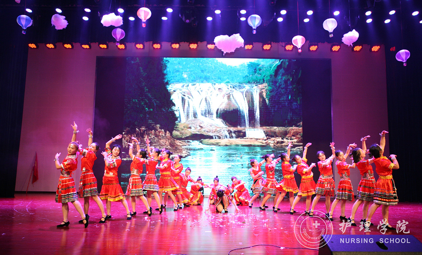 晚会以讲述人物故事的形式展开,共分为“心迎新•护梦起航”、“贵医情•杏林之馨”、“踏歌行•共谱华章”三个篇章。在伴随着10、9、8……的倒计时后,风格神秘、激情的舞蹈《New Life》拉开了晚会序幕;歌曲《Maps》,音调激昂,荧光灯下是那么光彩夺目,悦耳动听;《花溪花溪》的舞姿轻盈、《secret garden》走秀可谓抓住了所有观众的眼球,模特们的摆姿、步态魅力四射,焕发着青春的活力;相声《大学生活》给同学们带来了无限的欢乐;舞蹈串烧《炫》,如它的名字一般,炫酷全场;《CCLV》更是以诙谐的语言获得了观众们的阵阵掌声;情景剧《天亮了》与《我们和你》展现出了护生工作的写照,我们要树医院文明新风,展白衣天使风采,弘扬南丁格尔精神,铸塑新时代医院新形象;合唱《没有什么不同》和《不忘初心》,提醒着同学们新时代新青年要不忘初心,砥砺前行。节目中插播的暖心祝福视频表达了allwincity万象城官方网站院长贾秀英老师和党政领导以及全体教师和学长学姐们对2018级新生的欢迎和喜爱之情,希望同学们能坚持如一,勤奋刻苦,认真学习,享受大学时光,并真诚祝愿同学们能够学业有成,征程有道,用四年练造强大的臂膀,扬启航的船帆驶向远方。