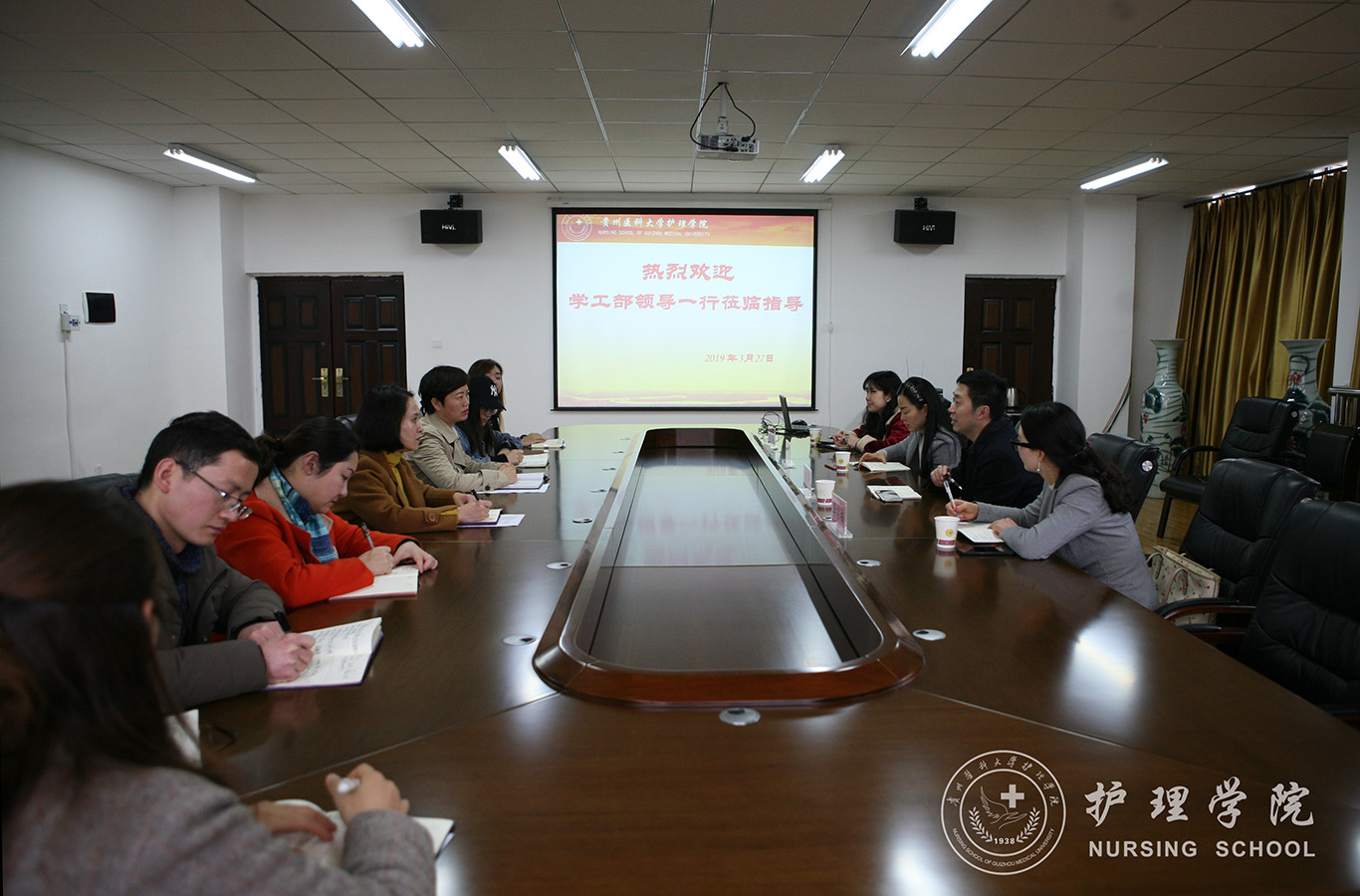 3月27日上午,学校学工部赵平部长一行到allwincity万象城官方网站调研学生安全工作。学工部副部长李宗梅、肖绚,学工部张媛老师陪同调研。allwincity万象城官方网站党委书记杨英、党委副书记王秀红、学生管理科科长曾敏及全体辅导员参加了调研会议。会议在南校区百川楼五楼会议室举行。