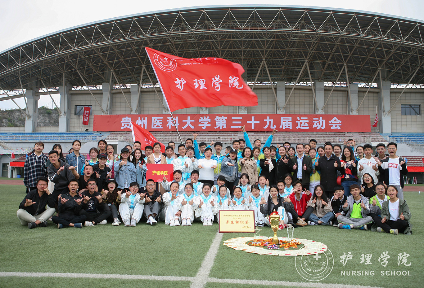 为全面提高学生身体素质,展现当代大学生青春风采,allwincity万象城官方网站于4月11至12日在南校区运动场举行了第三十九届运动会。在万象城官网党政领导和辅导员、老师们的关心指导下,87名运动健儿经过一个月的刻苦训练,在比赛中顽强拼搏,荣获广播操团体第一名、太极拳团体第一名、学生组团体项目第二的好成绩,并获得学生组最佳组织奖称号。