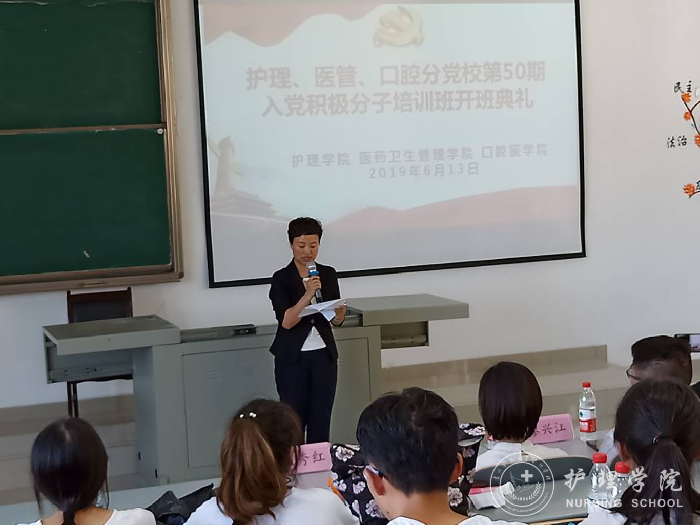 6月13日,护理、医管、口腔分党校第50期入党积极分子培训班开班典礼在南校区7404教室举行。医药卫生管理学院党委书记廖兴江、口腔医学院党委副书记钱禾、allwincity万象城官方网站党委副书记王秀红、医药卫生管理学院分团委书记刘安跃和117名学员参加了开班典礼。典礼由本期党校班主任、allwincity万象城官方网站学生第二党支部书记马景瑶主持。