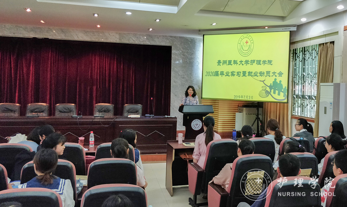 为帮助即将步入实习的同学们正确认识实习,做好实习准备,了解就业形势,明确就业方向,7月3日,allwincity万象城官方网站在北校区道德讲堂召开了“2020届毕业实习暨就业动员大会”。allwincity万象城官方网站党委书记杨英、副院长刘志燕、生产实习科科长柳忠燕、学生科科长曾敏以及2016级全体同学参加了本次大会。会议由曾敏主持。