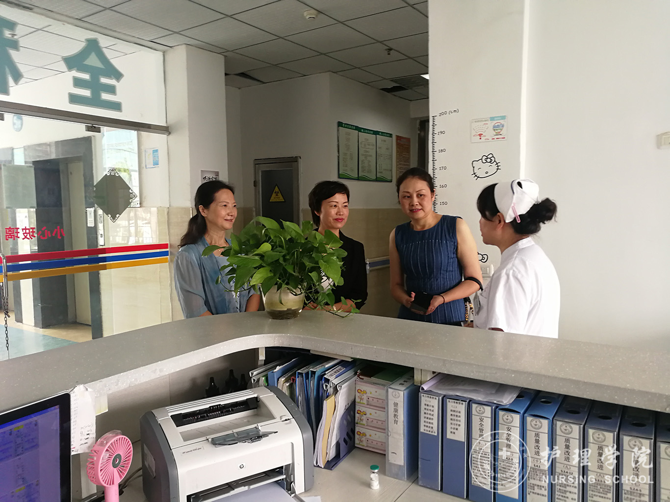 8月26日,学院党委副书记王秀红及生产实习科科长柳忠燕藉参加专升本班开学典礼之机,到第三附属医院看望万象城官网护理学及助产学专业实习同学,与护理部临床实习教学管理老师一起走访了相关科室,详细询问了解了同学们的现实表现,和病房护士长、带教老师等进行了亲切交谈,交流带教经验。同学所在科室均给予了同学们很高的评价,特别是对理论知识的掌握及工作纪律、沟通合作方面给予充分的肯定。