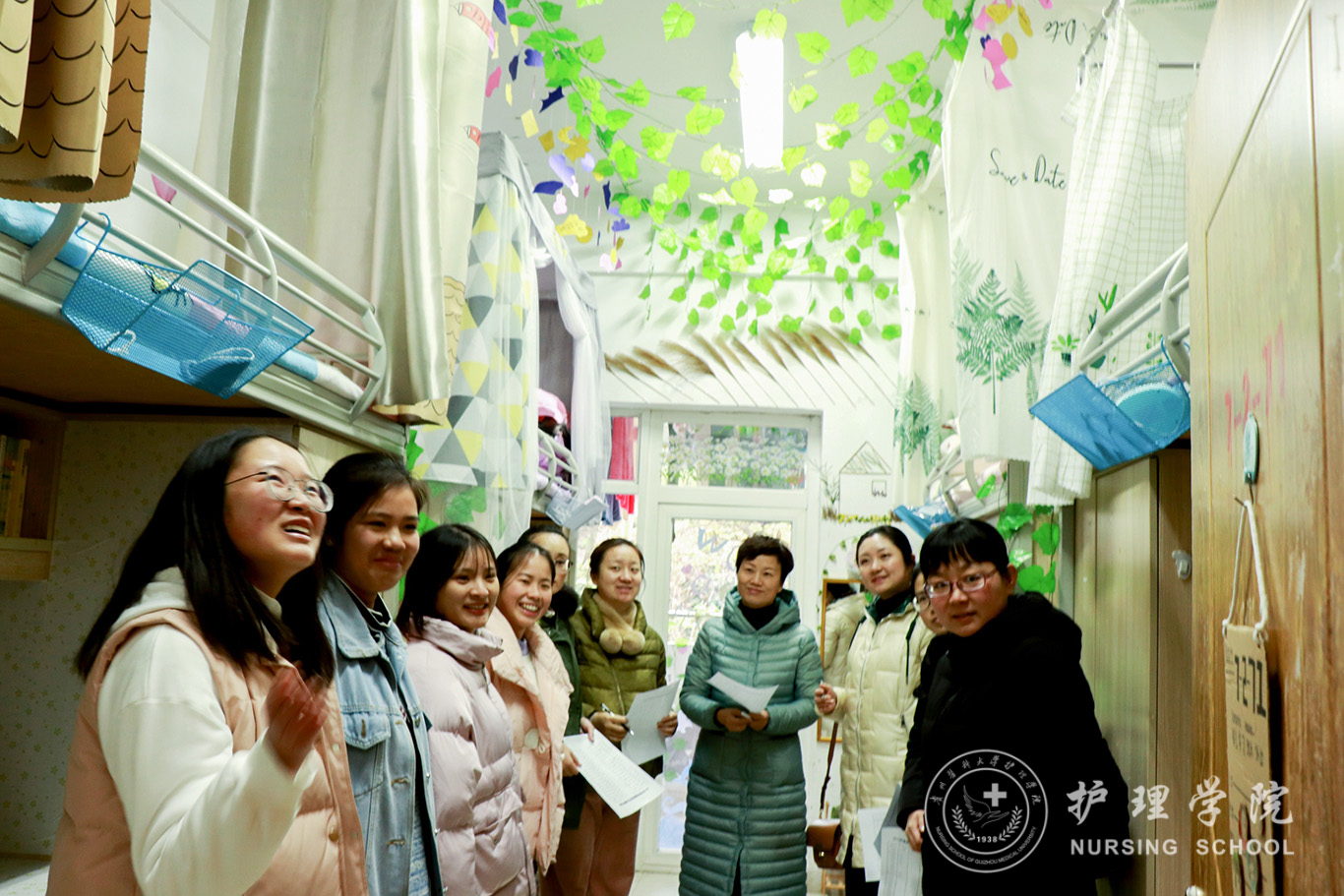 经过初赛的选拔,共有43间寝室进入了决赛环节。评委们对寝室的装饰、卫生和安全用电等方面进行了综合考察,讲解员们向评委们讲述着自己独特装饰风格和意义所在,可以感受到同学们对寝室的装饰十分用心。有积极向上的绿色环保风格、健康活泼的运动风格、简约大方的书画风格、特色鲜明的传统剪纸风格,更有“诚于己,忠于群,敬往思来”的笔墨装饰,增添了一份贵医人的文化内涵。王秀红还亲切询问了同学们的学习、生活情况,表扬了同学们温馨又有创意的寝室风格,指出部分寝室装饰存在的安全隐患,希望同学们注意寝室安全,也希望同学们在大学生活中要有明确的目标,砥砺前行,同时珍惜同学间的感情,和睦相处。最后,经过综合评选,共评选出一等奖2名,二等奖4名,三等奖6名,优秀奖3名。