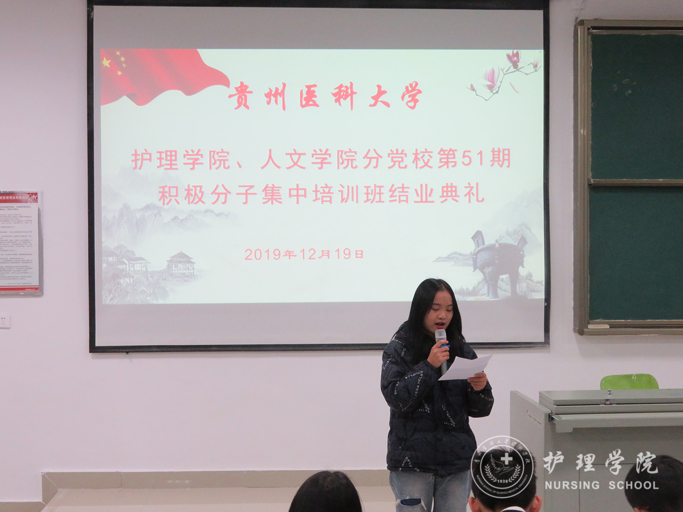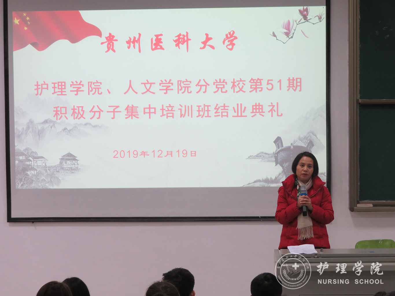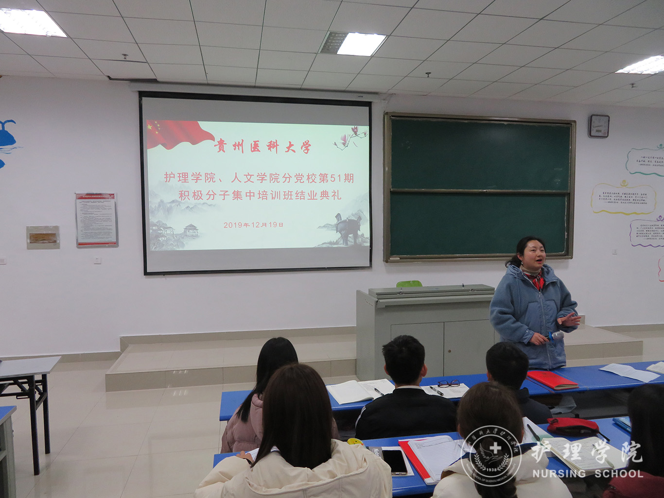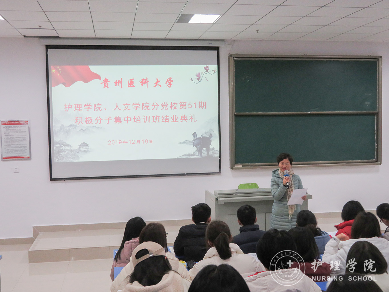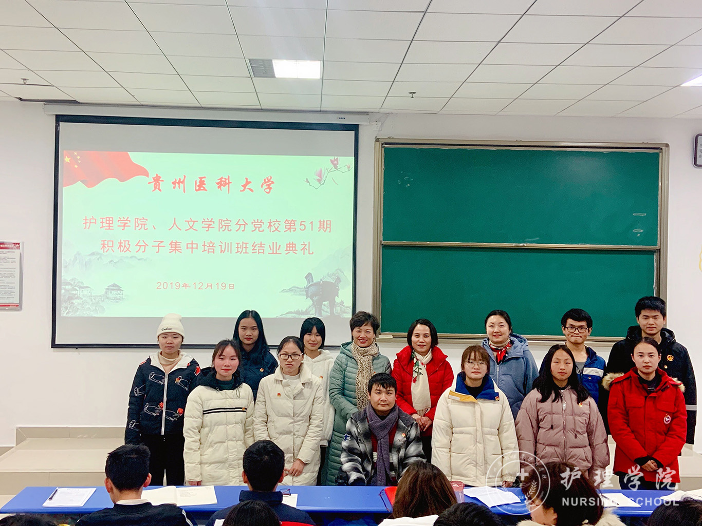 12月19日,allwincity万象城官方网站、医学人文学院分党校第51期入党积极分子集中培训班结业典礼在南校区广德楼1301教室举行。allwincity万象城官方网站党委书记杨英、副书记王秀红、本期培训班班主任曾敏及全体学员参加了典礼,典礼由王秀红主持。