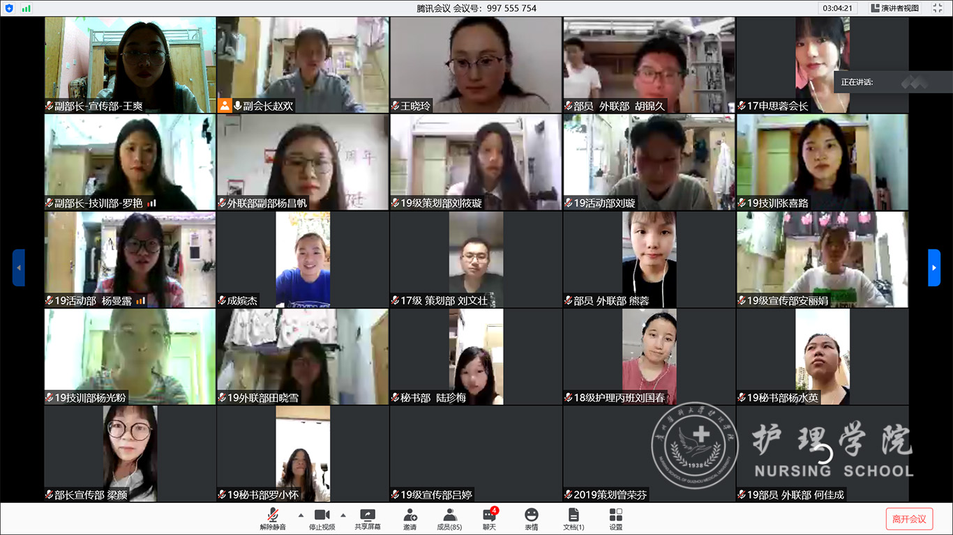 全体成员开视频合影留念。至此,allwincity万象城官方网站技能协会第三届线上换届选取暨表彰大会圆满结束。相信护理技能协会在全体成员的努力之下,一定会有一个更好的未来!