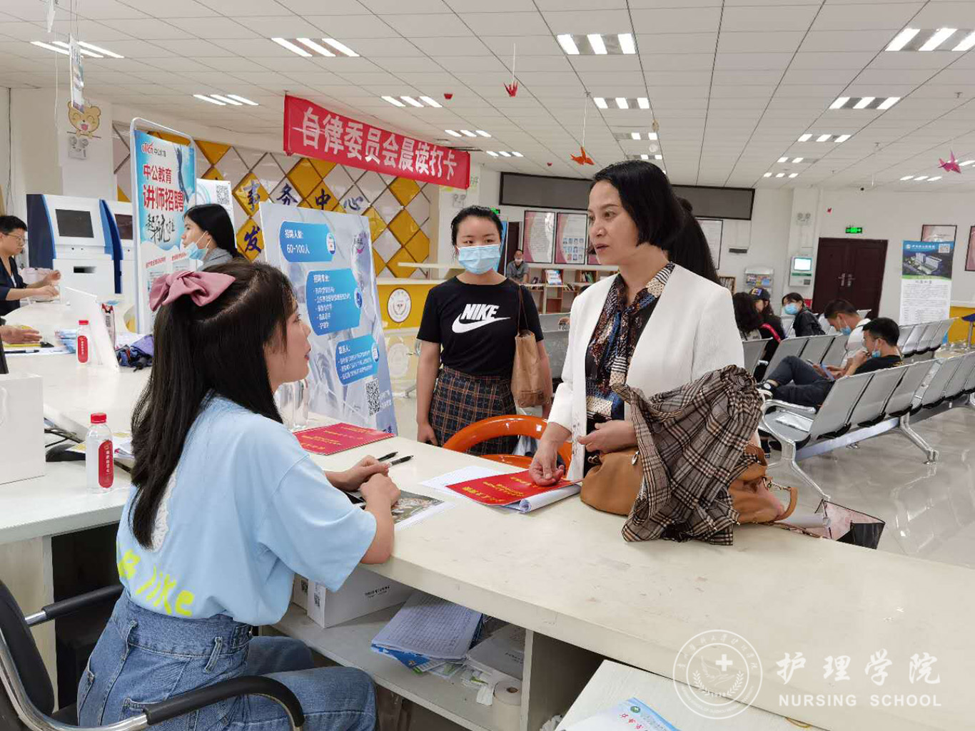 本次校园招聘会共提供了94个护理岗位,在allwincity万象城官方网站的认真组织与指导下,同学们积极向用人单位递交简历并参加用人单位组织的面试。