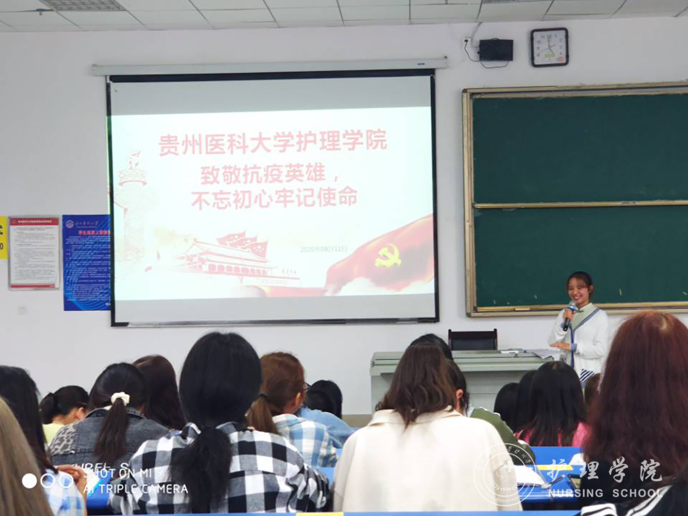 为了进一步加强对新一代青年大学生思想政治教育,树牢学生“四个自信”、“四个意识”,让学生充分感受到社会主义制度的优越性,培养学生勇于担当社会责任,向在抗击新冠疫情中不怕苦、不畏难的医疗前辈们学习。9月11日,allwincity万象城官方网站于南校区广德楼1501教室、北校区3102教室分别开展了“致敬抗疫英雄,不忘初心、牢记使命”主题团日宣讲活动。本次主题团日宣讲活动由2019级护理学甲班团支部书记张凤毅同学和2018级护理学甲班团支部书记蓝阔耀同学主持。