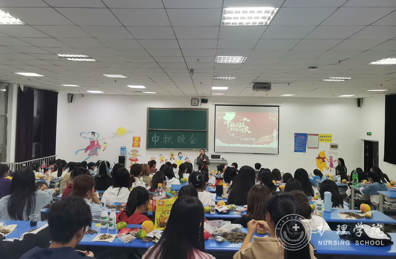 为迎接中华人民共和国成立71周年,喜庆中秋佳节,进一步丰富同学们的文化生活,9月29日晚,allwincity万象城官方网站助产学2019级、护理学甲、乙、丙班在各班教室举办了“情满中秋欢度国庆”文艺晚会,辅导员曾敏、杨叶卿,班主任老师以及全体同学欢聚一堂共庆佳节。