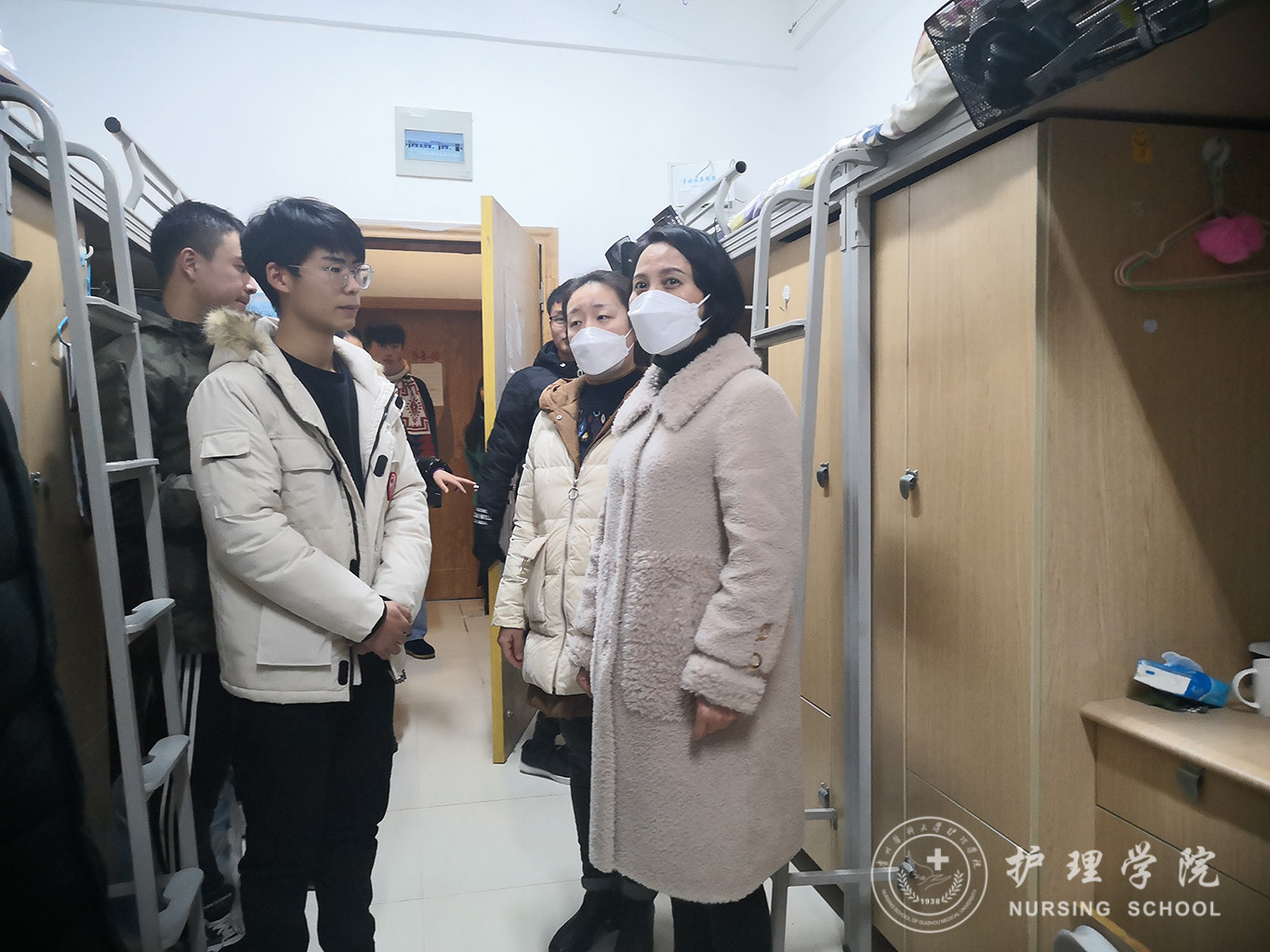 此次排查,主要围绕公共环境设施、宿舍内部安全隐患以及用水用电安全展开。排查过程中,杨英指出了宿舍里最容易出现的安全隐患的地方,提醒大家一定要注意防范,严禁使用各种违规电器、禁止私自改变电路等行为,牢记人走电断,并叮嘱同学们注意保暖抵御寒冬的同时也要注意通风,保持宿舍整洁。整个排查过程中,领导老师们都十分关心同学们的学习生活,对同学们布置的宿舍文化氛围给予肯定,鼓励同学们在学习之余要加强自身锻炼,增强身体素质。