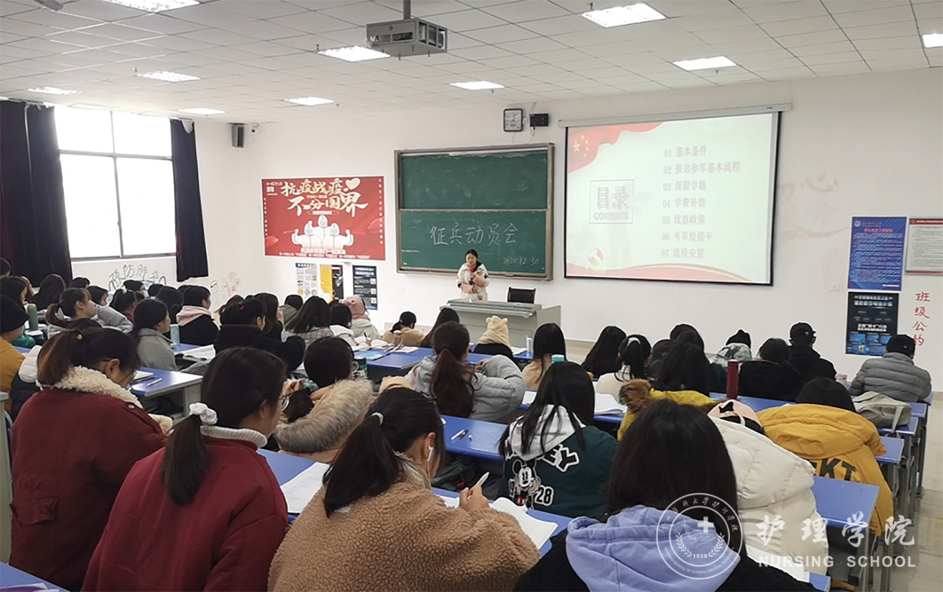 12月25日至29日,为贯彻落实全省和学校大学生征兵工作会议精神,扎实推进2021年大学生应征入伍工作,allwincity万象城官方网站在低年级召开2021年大学生应征入伍宣传动员会,动员会由2019级和2020级辅导员和班干主持,全体2019、2020级学生参与。