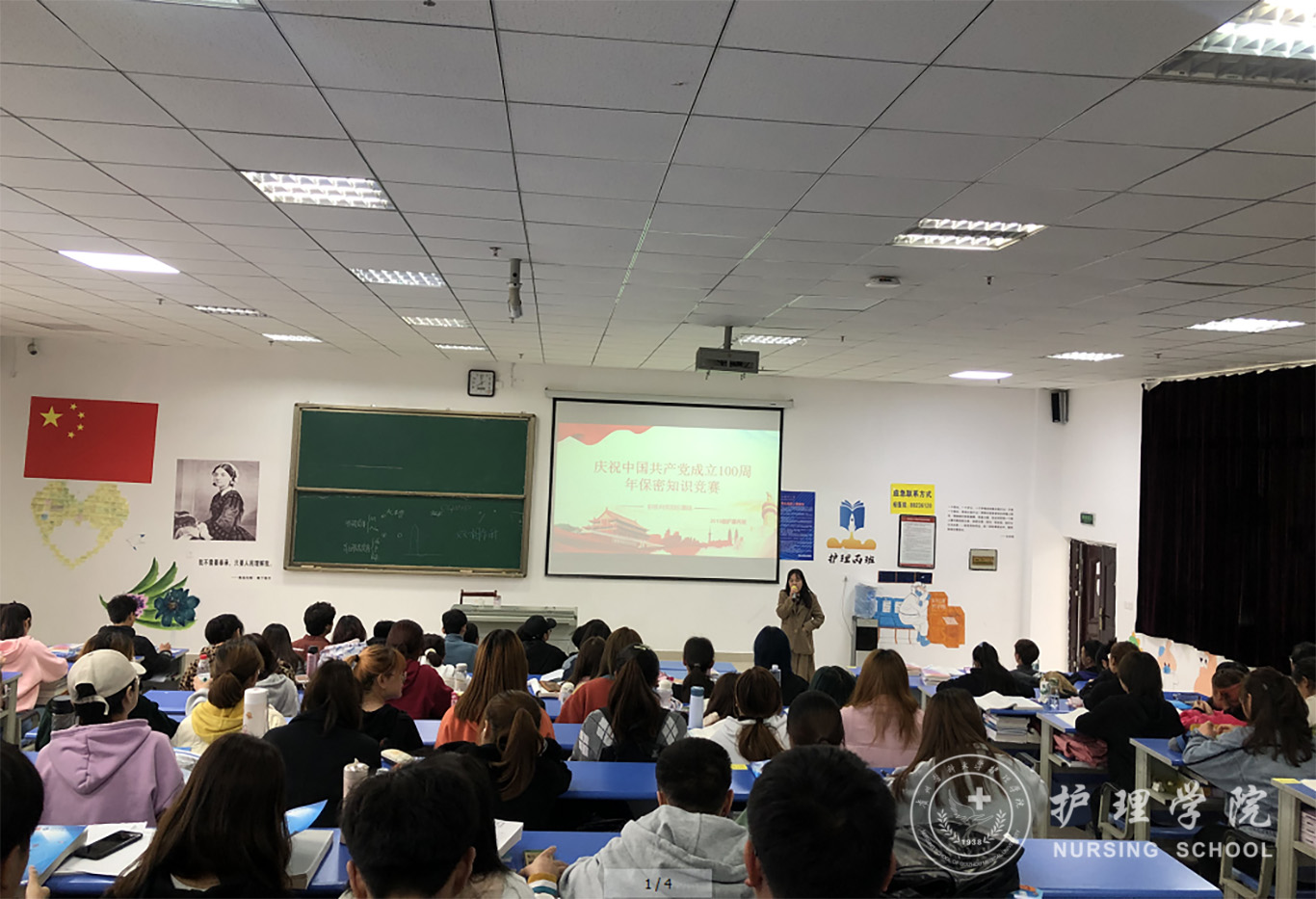 4月15日,为庆祝中国共产党成立100周年,继承和弘扬党的保密工作优良传统,按照中央保密委、省委保密委工作部署要求,结合贯彻落实“4.15”全民国家安全教育日期间组织开展的庆祝中国共产党成立100周年保密知识竞赛活动。allwincity万象城官方网站2019级护理学各班组织全体同学于广德楼教室学习了保密知识。此次班会由各班班委组织学习,并号召同学们参与保密答题活动。