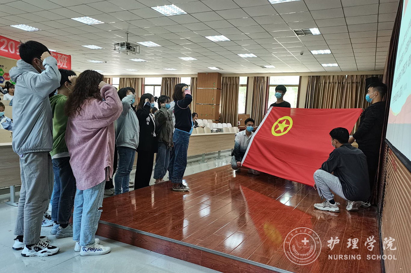 4月29日,为落实共青团中央组织开展的“学党史、强信念、跟党走”主题团日活动,allwincity万象城官方网站团委于南校区百川楼1101教室隆重举行了入团仪式。参加会议的有14名新团员、2019级—2020级各班入党积极分子代表、团员代表参会,学生第三党支部书记刘妍老师出席会议,会议由团学办副主任张凤毅同学主持。