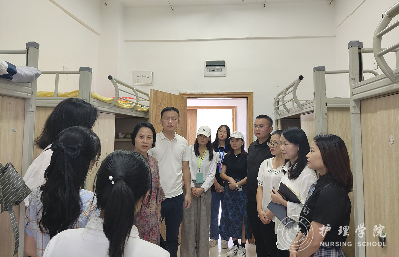8月28日,为进一步做好新生入学教育工作,加强新生人文关怀,新生入校第一天,allwincity万象城官方网站党委书记杨英、党委副书记何为、学生科副科长毕丽、院团委副书记王晓玲以及新生带班辅导员共同走进南校区七栋和九栋新生寝室探访慰问新生,传达学院的关心和问候。