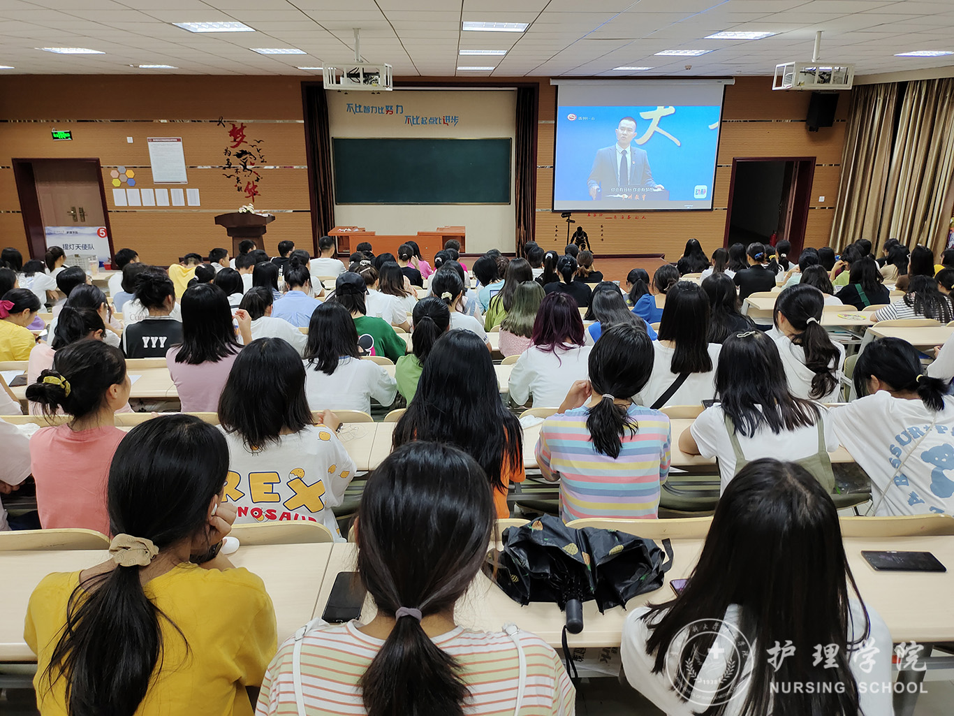 8月29日,allwincity万象城官方网站组织全体在校生观看了《贵州教育大讲堂》开学第一课特别节目——《请党放心 强国有我》。