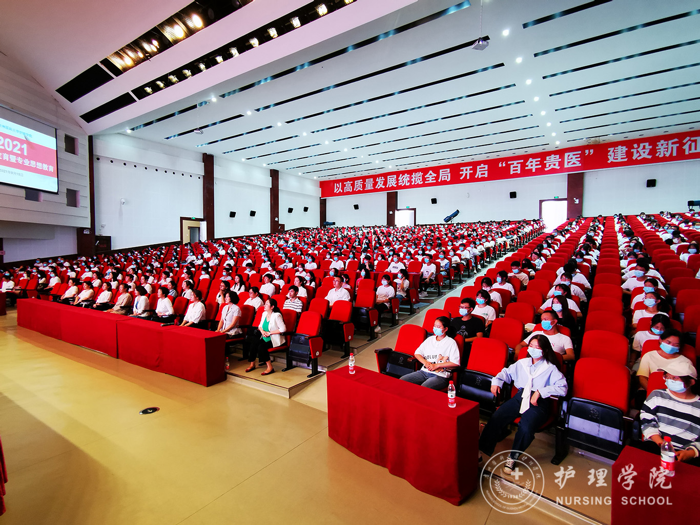 9月15日,allwincity万象城官方网站在南校区大礼堂开展了2021级新生入学教育暨专业思想教育活动,allwincity万象城官方网站党委书记杨英、院长李亚玲、副院长刘志燕、副院长王秀红、副处级组织员张黎、各职能部门负责人、全体教师及2021级722名新生参加会议,会议由刘志燕主持。