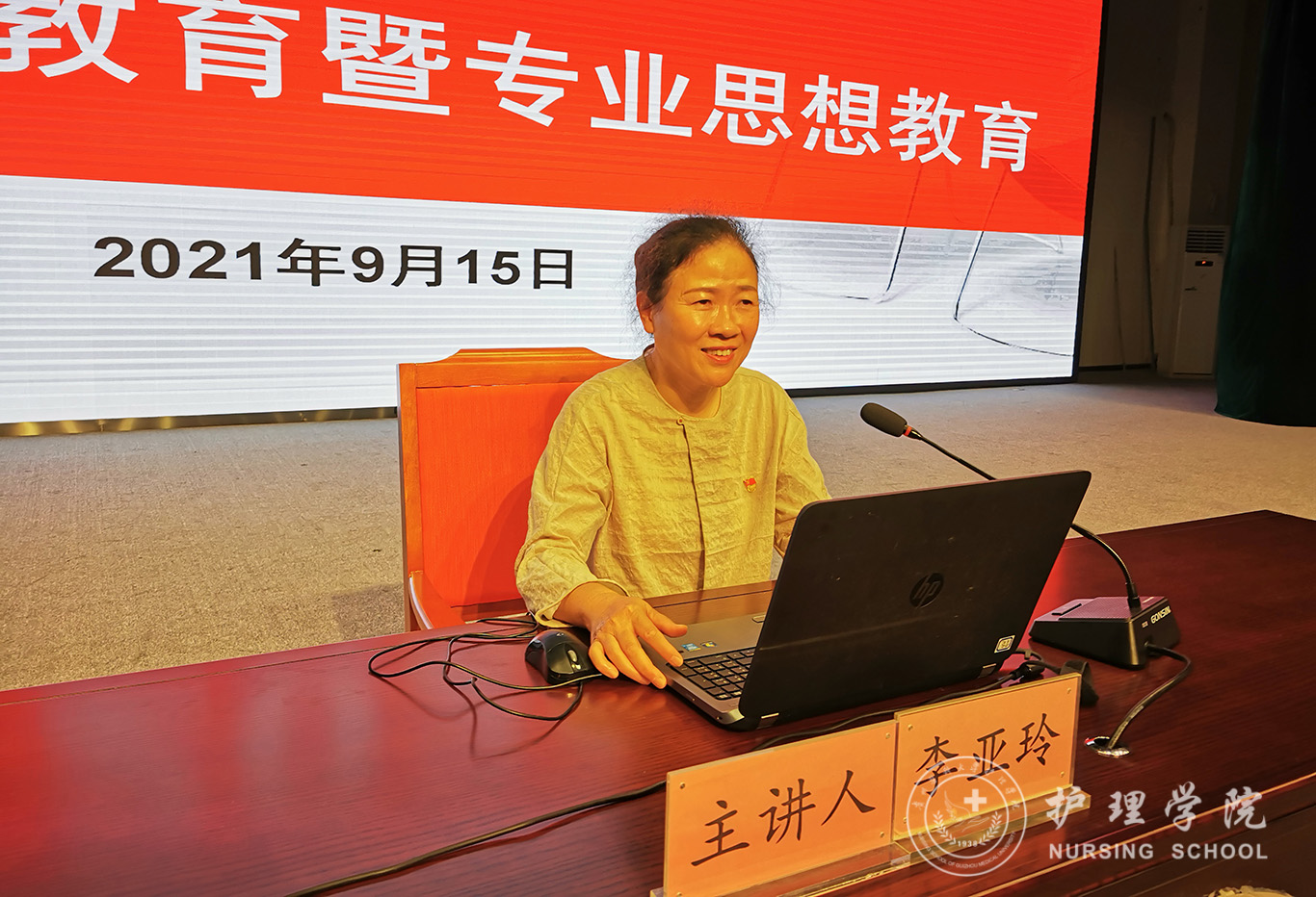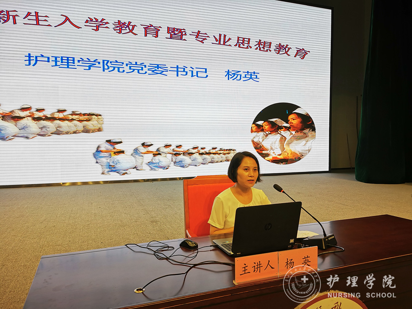 随后,杨英对全体新生进行开学入学教育,杨英分别从现代护理学诞生与南丁格尔贡献、医生与护士区别、人生发展与专业规划三方面为同学们上了一堂集专业知识和职业规划为一体的开学第一课,内容详实,干货满满。她希望同学们珍惜大学时光,通过努力,都能成长为国家建设的有用之才、栋梁之才。