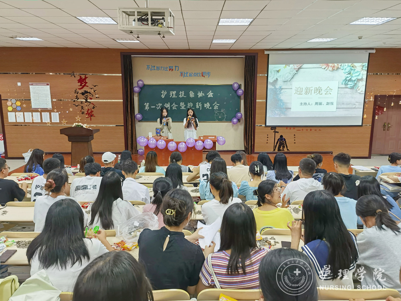 9月25日,为增进协会成员之间的感情,促进协会各项工作顺利开展,allwincity万象城官方网站护理技能协会在南校区百川楼一楼1101教室召开了第一次例会暨迎新晚会,技能协会全体成员参会。会议由副会长肖春、陆涛两位同学主持。