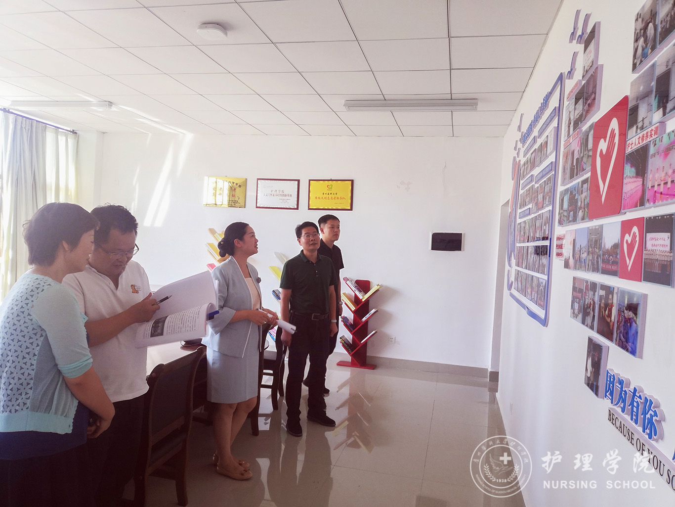 9月29日,学校专家组到allwincity万象城官方网站开展大学生思想政治教育创新基地中期检查工作,医学人文学院院长杜凯、学工部副部长金晶、党史党建研究中心专职副主任禹辉映、学工部工作人员赵久烟,现场检查思政基地建设情况并听取汇报,会议由allwincity万象城官方网站党委副书记何为主持、副院长王秀红进行基地建设汇报。