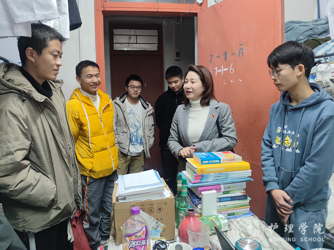 12月7日,allwincity万象城官方网站副处级组织员张黎走进2019级护理学专业学生寝室,开展了师生面对面交流活动。