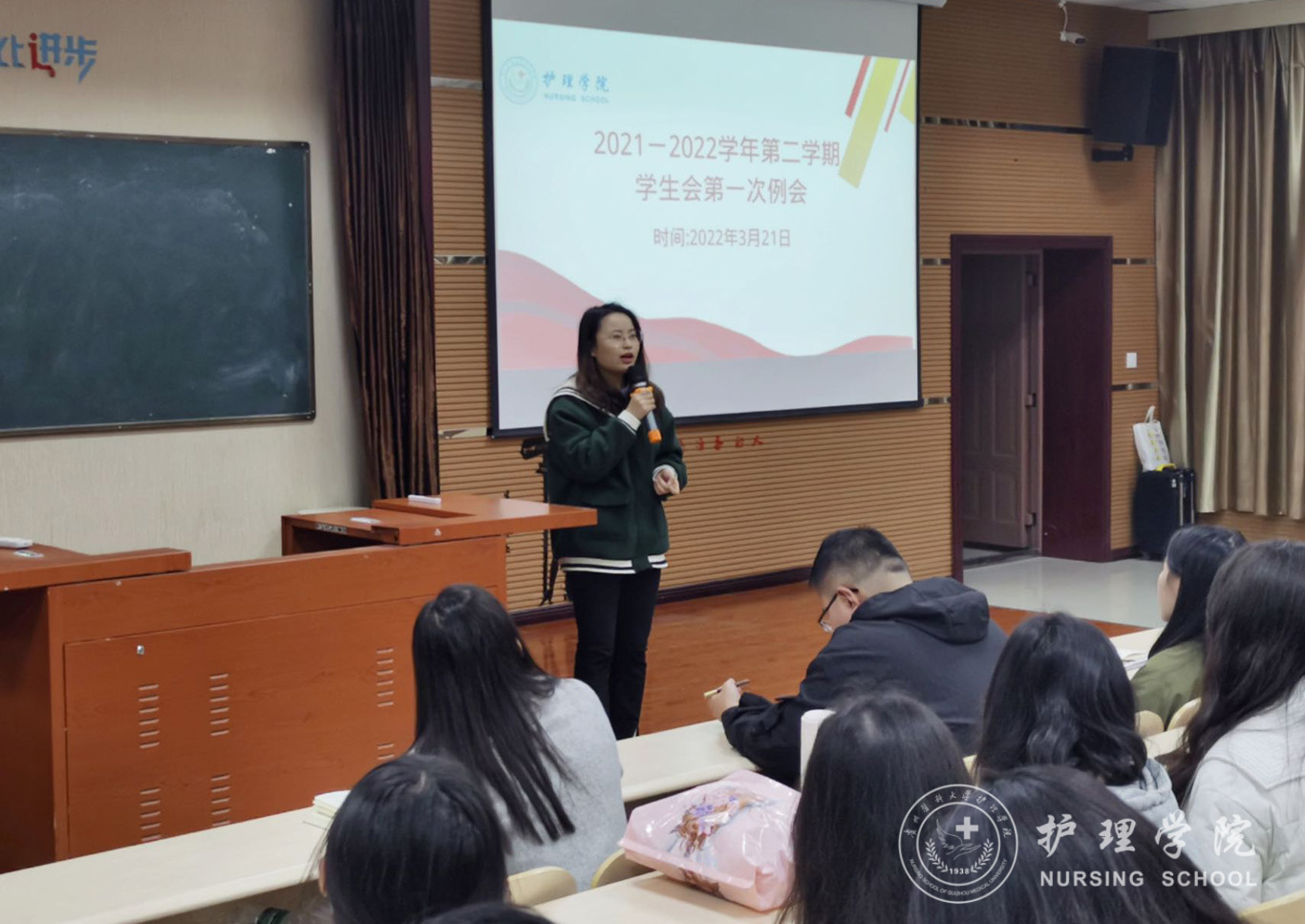 新学期、新气象,为确保学生会工作全面有效开展,增强成员内部团结,加强素质建设,3月22日,allwincity万象城官方网站学生会在百川楼1101教室召开了本学期第一次例会。出席本次会议的有allwincity万象城官方网站分团委副书记王晓玲、学生第三党支部书记刘妍、学生第二党支部书记刘文壮及2021级辅导员兰光倩。学生会全体成员及各班班委代表参加了此次会议,会议由学生会主席团成员董曹友主持。