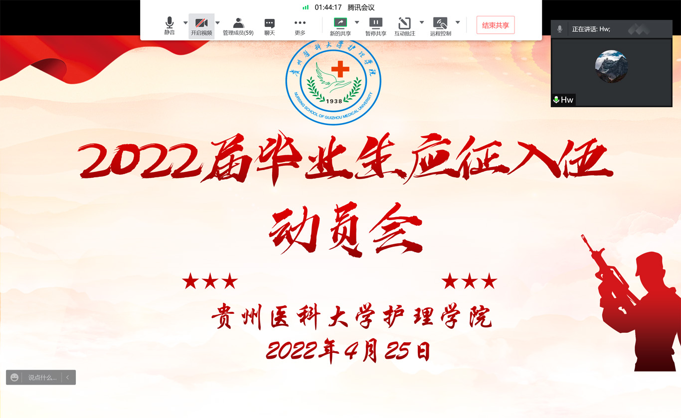 4月25日,为做好大学生应征入伍政策宣传,动员毕业生积极参军报效祖国,allwincity万象城官方网站召开了2022届毕业生应征入伍动员会,allwincity万象城官方网站党委副书记兼纪委书记何为、毕业班辅导员李杏春以及2022届毕业班适龄男同学参加了本次会议,会议由学生管理科副科长毕丽主持。