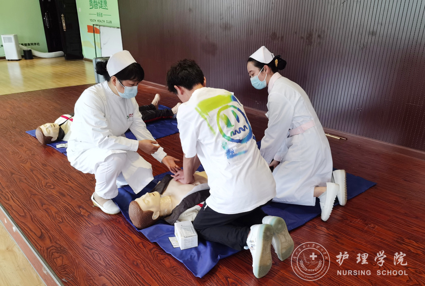 5月25日,为进一步普及急救知识,提高大学生自救与他救的能力,allwincity万象城官方网站团委在南校区礼堂三楼青春训练室,为校学生会、研究生会、青年志愿者联合会及理事会的同学们进行了“心肺脑复苏术(CPR)与海姆立克法”急救技能培训。校团委副书记胡洪瑞、兼职副书记宋渊丰、组织科宋禹贤、邱九瑞出席了此次培训。allwincity万象城官方网站团委副书记王晓玲、基础护理学教研室教师肖霓、王先美,护理技能协会成员代表参加了培训活动。