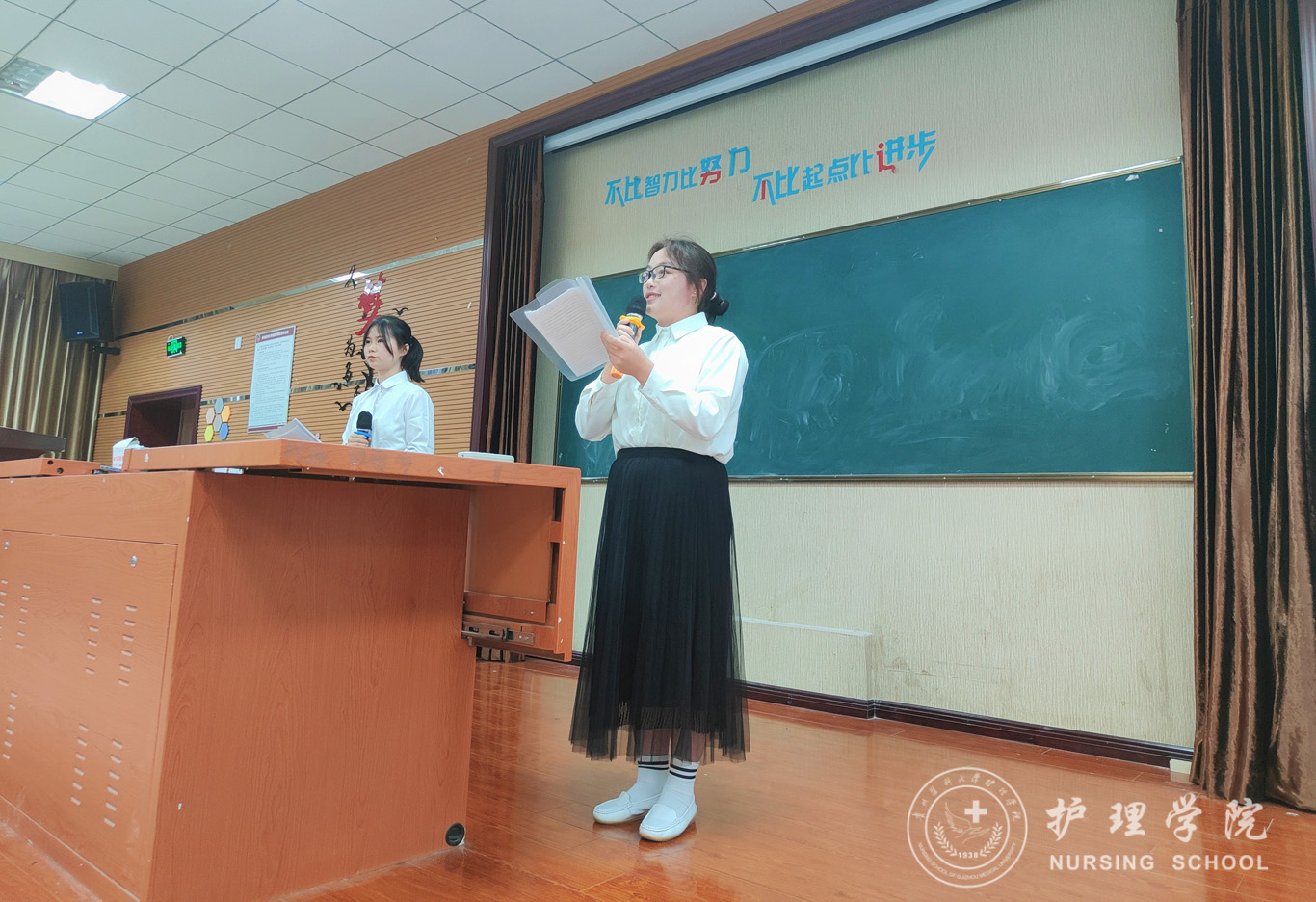 比赛中,参赛选手们伴随着或悠扬、或激昂的背景音乐,用优美的语音、端庄的仪态与经典美文完美结合。选手们的出色表现赢得了大家的阵阵掌声,刘妍为选手的表现做了精彩的点评,肯定了参赛选手们感情基调的把握能力,同时也针对选手们的不足提出了改进的建议。此次大赛在同学们喝彩中圆满落下帷幕。