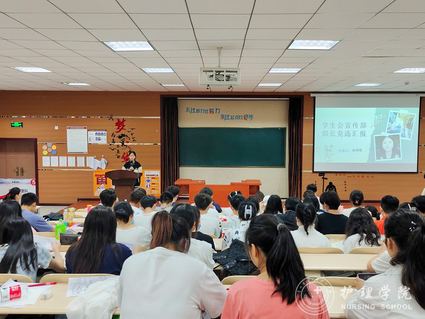 6月27日,为保证学院学生会工作的有序开展,给学生搭建一个展现自我,实践自我的平台,allwincity万象城官方网站2021-2022学年度学生会换届选举会议于南校区百川楼1101教室召开。学院兼职团委副书记刘妍、学生第二党支部书记刘文壮出席,学生会全体成员、各班级、各学生组织代表参加了会议,会议由学生会副主席许竞月同学主持。