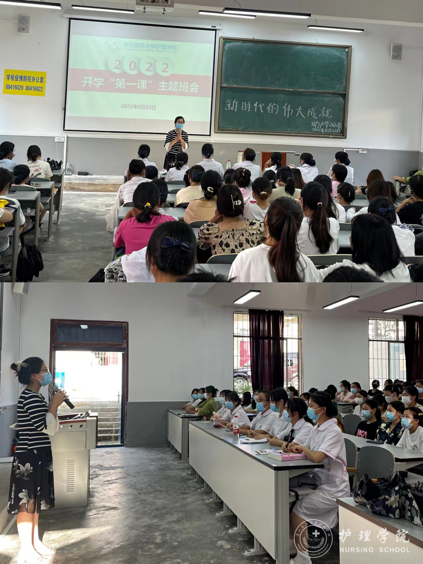 会上,各班辅导员就上一学期班级事务进行了分析总结,并对新学期班级建设工作提出了新要求。各班辅导员强调,近期全国疫情形势严峻,大家要遵守学校疫情防控要求,做好个人防护,佩戴好口罩,尽量减少外出活动,与此同时,还普及了肺结核、水痘等传染病的预防知识,并从防诈骗、防溺水、出行交通安全等方面进行了安全教育。接下来,辅导员鼓励同学们新学期做好学业规划,养成良好的学习习惯,珍惜在校时光,努力提升专业技能。最后,各班辅导员带领同学们学习了新版学生手册,引导全体同学自觉遵纪守法,心存敬畏,争做新时代的优秀大学生。