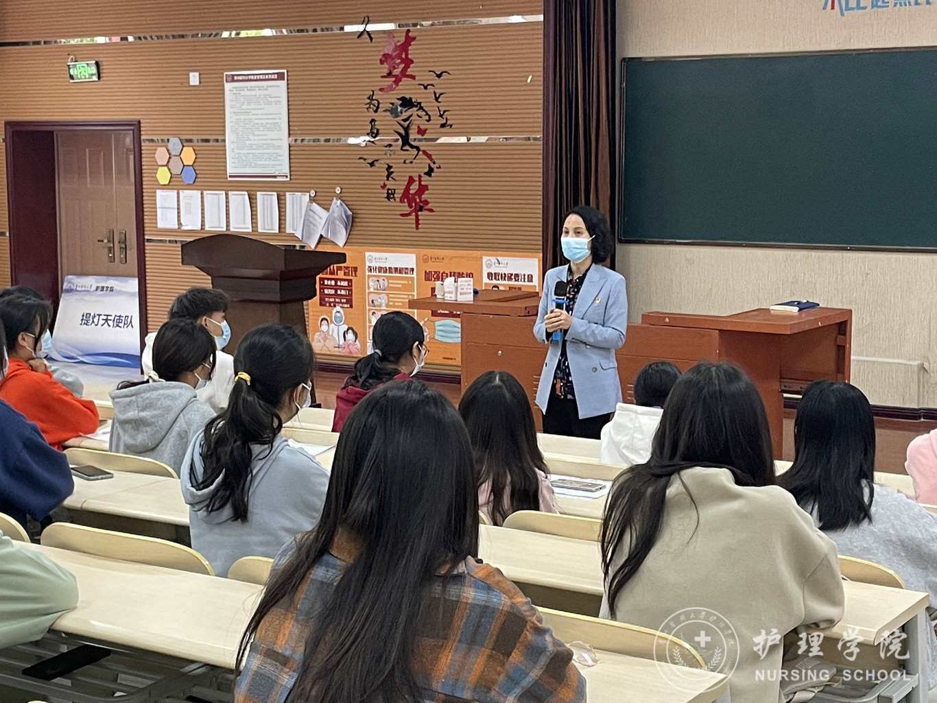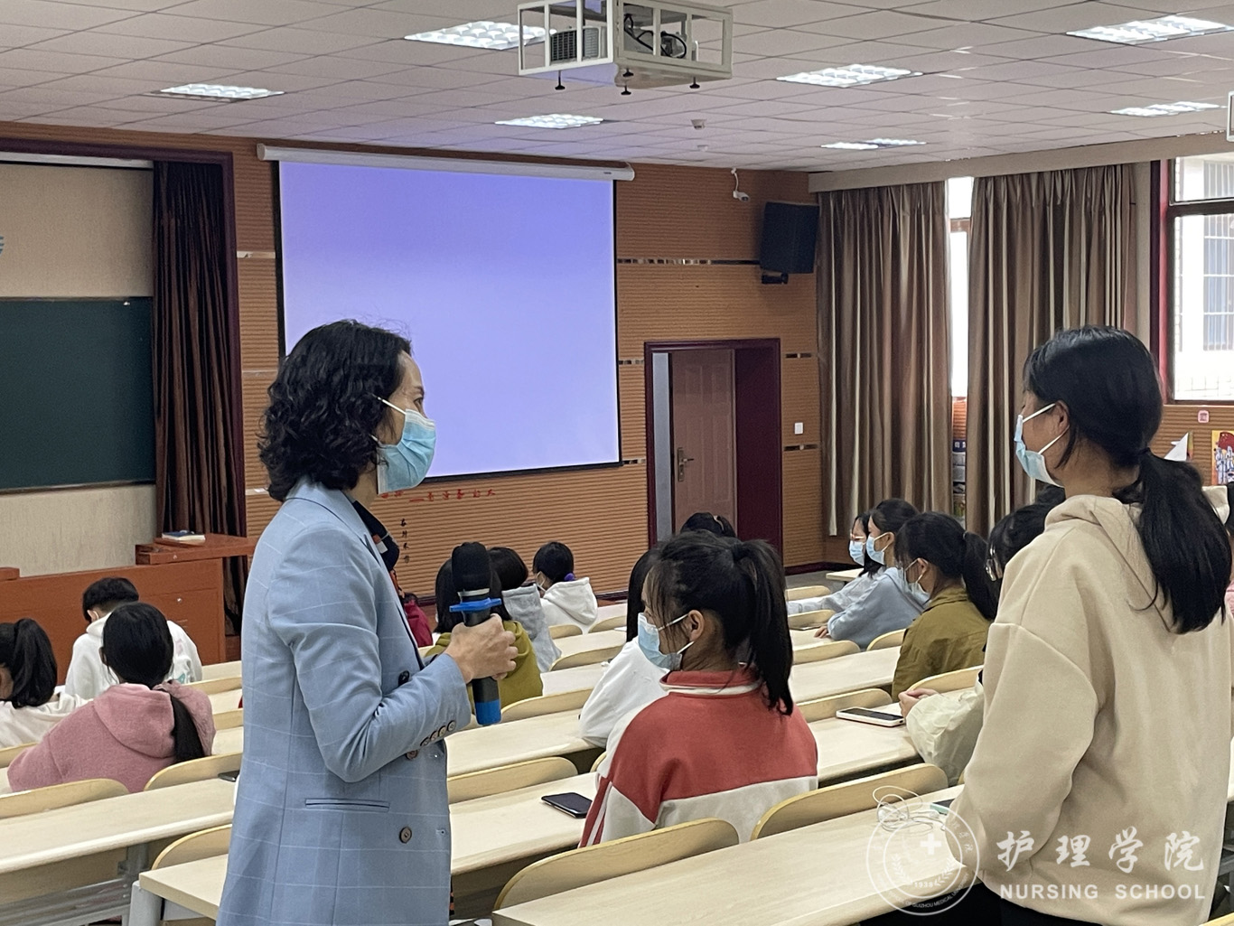 课后,杨英讲话,她希望同学们能够珍惜来之不易的学习机会,把握时间努力提升自己,对同学们提出三点要求:一是不负韶华,规划好大学生涯及职业发展,并为之奋斗;二是利用课余时间提升自己的综合素质能力,成为德智体美劳全面发展的优秀护理人才;三是学习领会党的二十大精神,增强政治素养,提高政治站位,坚定党的领导,积极向党组织靠拢,争做新时代优秀的社会主义接班人和建设者。