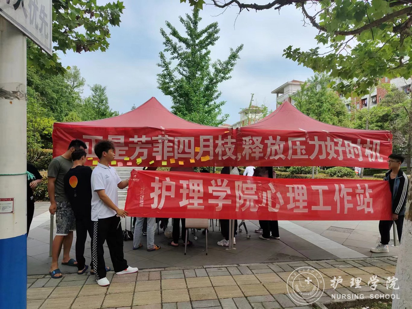 4月23日,为使同学们正确面对压力、释放压力,时刻保持良好的心理状态去投入校园学习生活,allwincity万象城官方网站心理工作站在南校区二食堂小广场上开展了以“正是芳菲四月枝,释放压力好时机”为主题的校园宣传活动。本次活动由学院各班心理委员组织,活动面向全校学生。