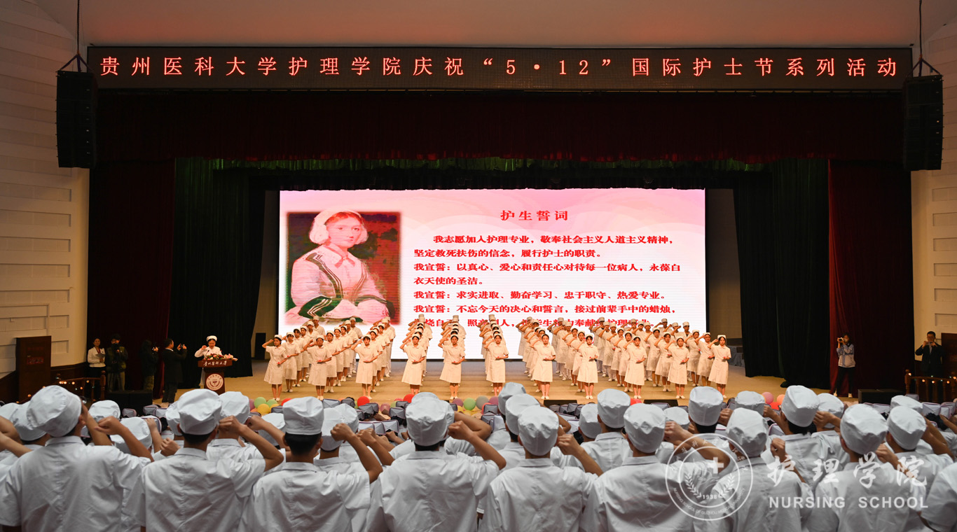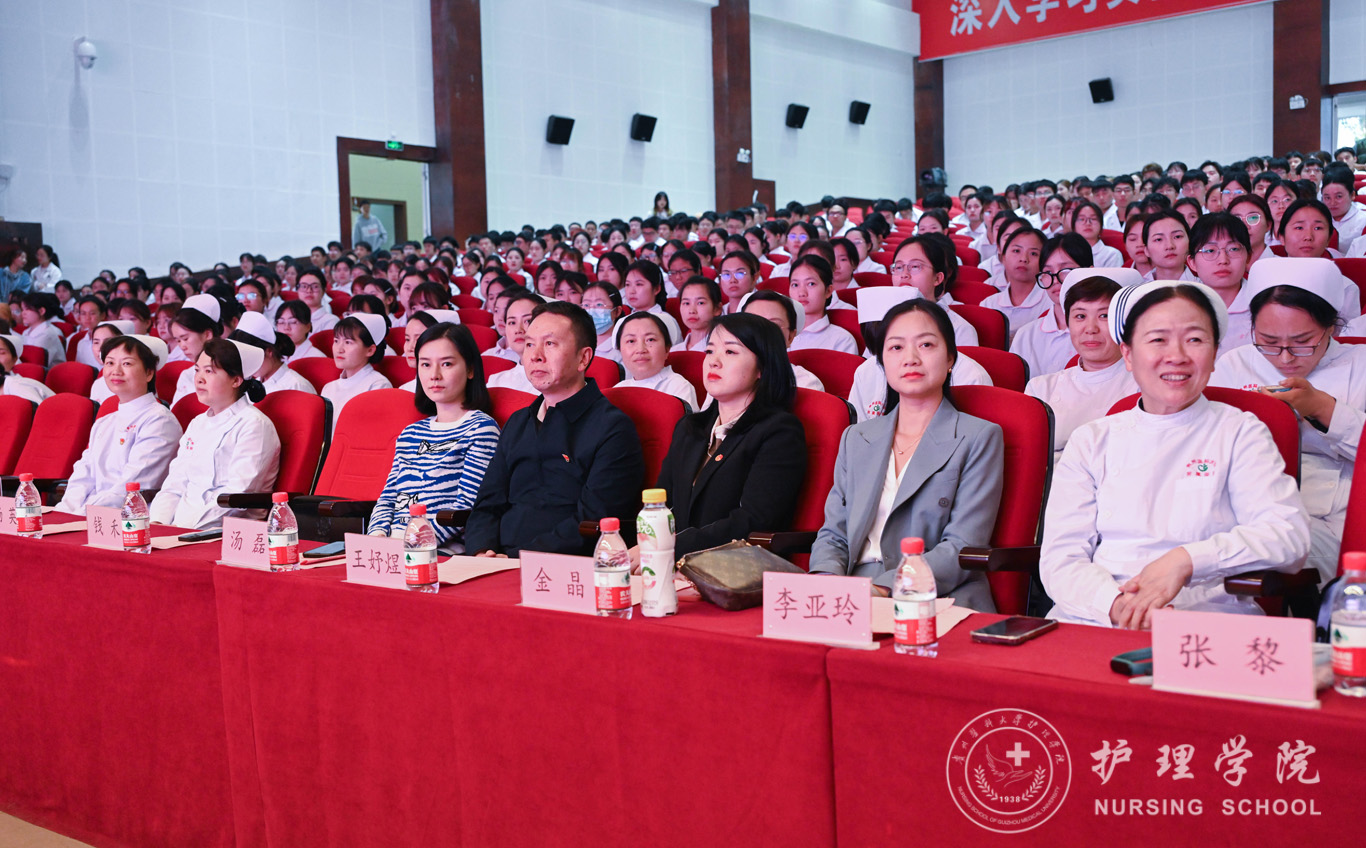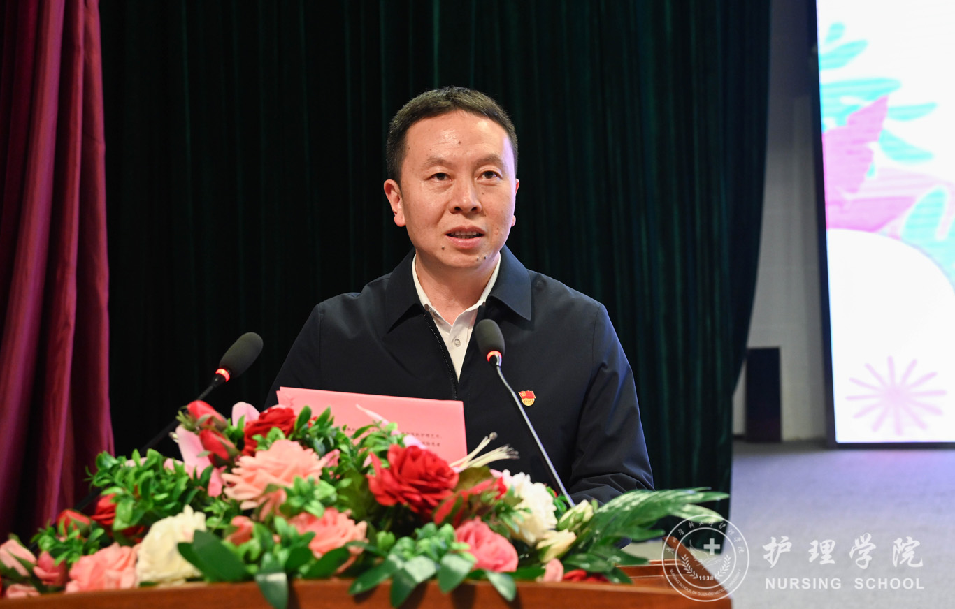 汤磊为本次活动致辞。他对学院一直以来的工作给予了肯定,向同学们提了三点要求:一是要用习近平新时代中国特色社会主义思想凝心铸魂,坚定理想信念,磨练意志品质,做新时代护理学事业发展知而行之的行动者;二是要向现代护理学事业伟大先驱南丁格尔学习,甘于奉献、救死扶伤,做新时代护理学事业发展坚而守之的继承者;三是不忘学医初心,牢记健康使命,恪守校训、秉承贵医精神,做新时代护理学事业发展奋而起之的奋斗者。