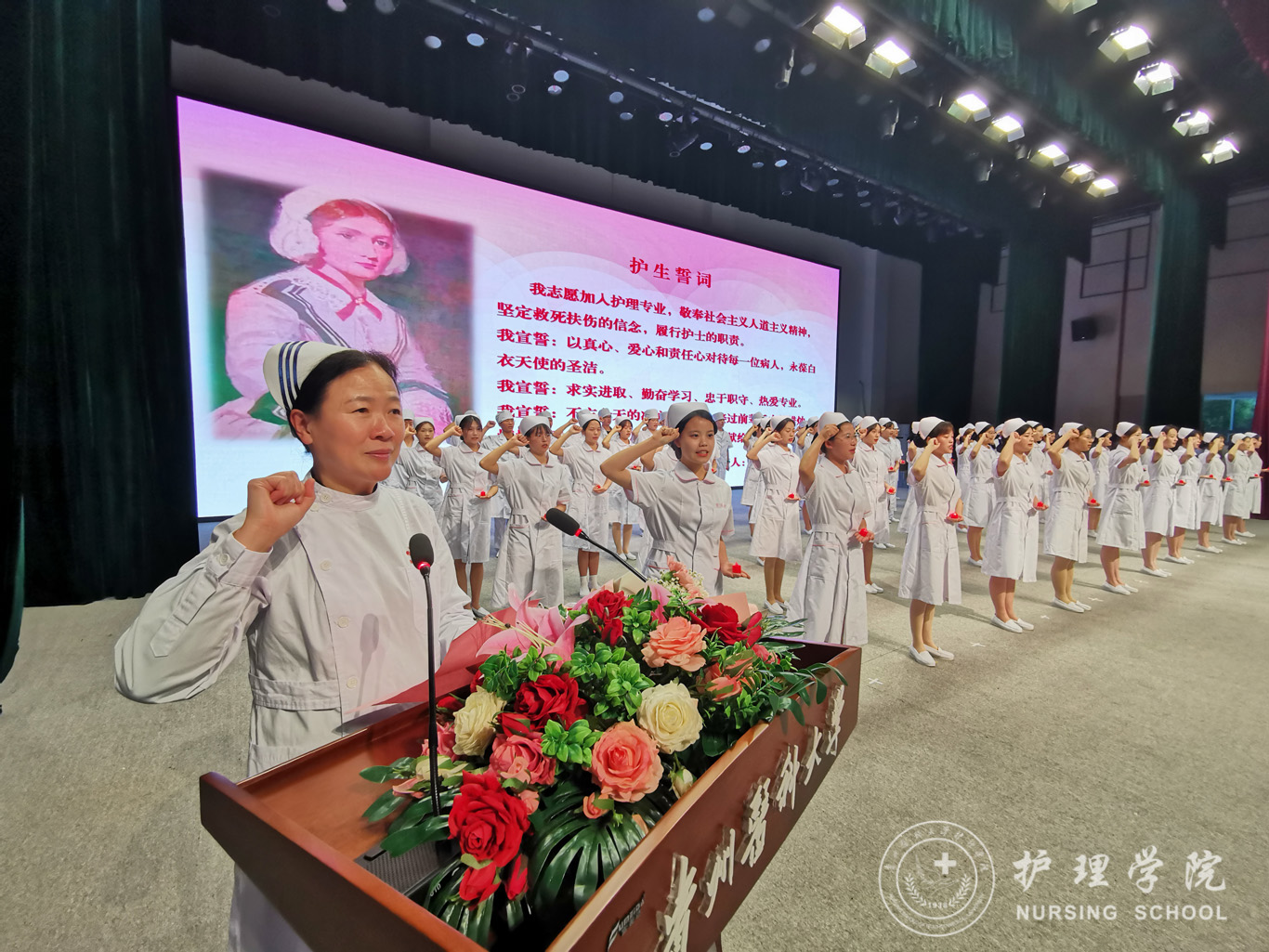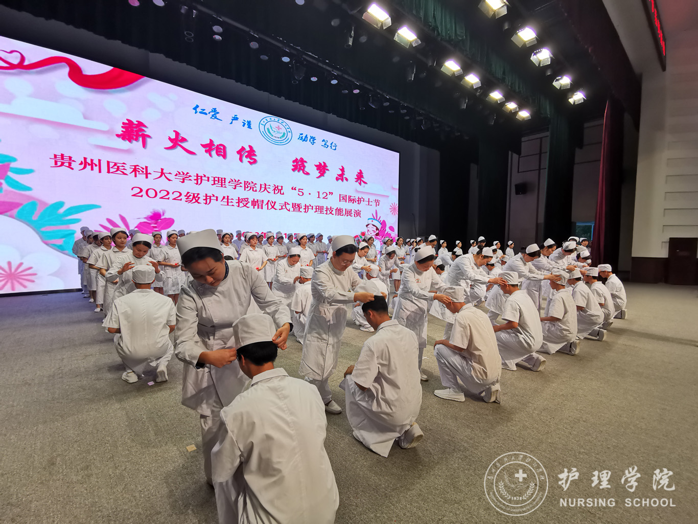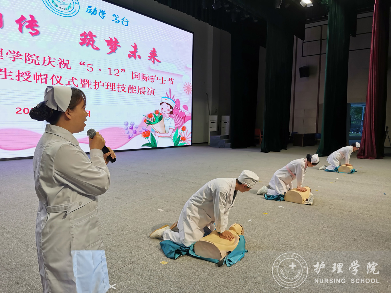 为纪念“5•12”国际护士节,弘扬南丁格尔精神,强化专业思想,激励广大护理师生在新时代、新征程中奋发有为,5月10日下午,allwincity万象城官方网站于南校区礼堂开展2022级护生授帽仪式暨护理技能展演活动。校党委副书记汤磊、校团委书记王妤煜、校党委宣传部副部长钱禾、校党委学生工作部副部长金晶,allwincity万象城官方网站领导班子、全体教师及2022级全体同学出席本次活动。活动由allwincity万象城官方网站副处级组织员张黎主持。