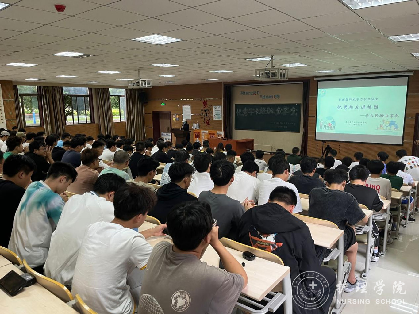首先,曾荣获“援鄂抗疫英雄”称号、得到贵州省人民政府记功的谭洪林向在场的同学分享了自己当时参加援鄂抗疫的情景。在新型冠状病毒肺炎疫情爆发后,他主动请缨,奔赴抗疫一线,和贵州省援鄂医疗队的成员一道打赢了疫情防控阻击战。谭洪林勉励同学们要学习过硬本领,勇于担当、善于作为,在祖国和人民需要的时候主动奋斗在护理第一线,为保卫人民群众的生命健康安全奉献自己的力量。接着,曾获推免研究生资格于武汉大学攻读硕士研究生毕业的王进波回顾了在校期间学习时学院的培养,他谈到在校期间学院曾开展了各种形式的专业思想教育和专业技能培训,这些专业思想教育和专业技能培训融入了他的生命,使他不断成长为一名保持感恩、热爱、奉献、坚守的“白衣天使”,他希望在校同学们把握时光,珍惜机会,不断加强自身专业本领学习,始终学在实处、做在前列,绽放属于护理学子的专业光辉。最后,杨英作讲话并提出希望,她勉励同学们学会改变、学会自励、发奋学习,在担当中历练,在尽责中成长,练就攻坚克难的本领,磨炼百折不挠的意志,脚踏实地、砥砺前行,在人生的道路上行稳致远,焕发属于自己青春的绚丽色彩。