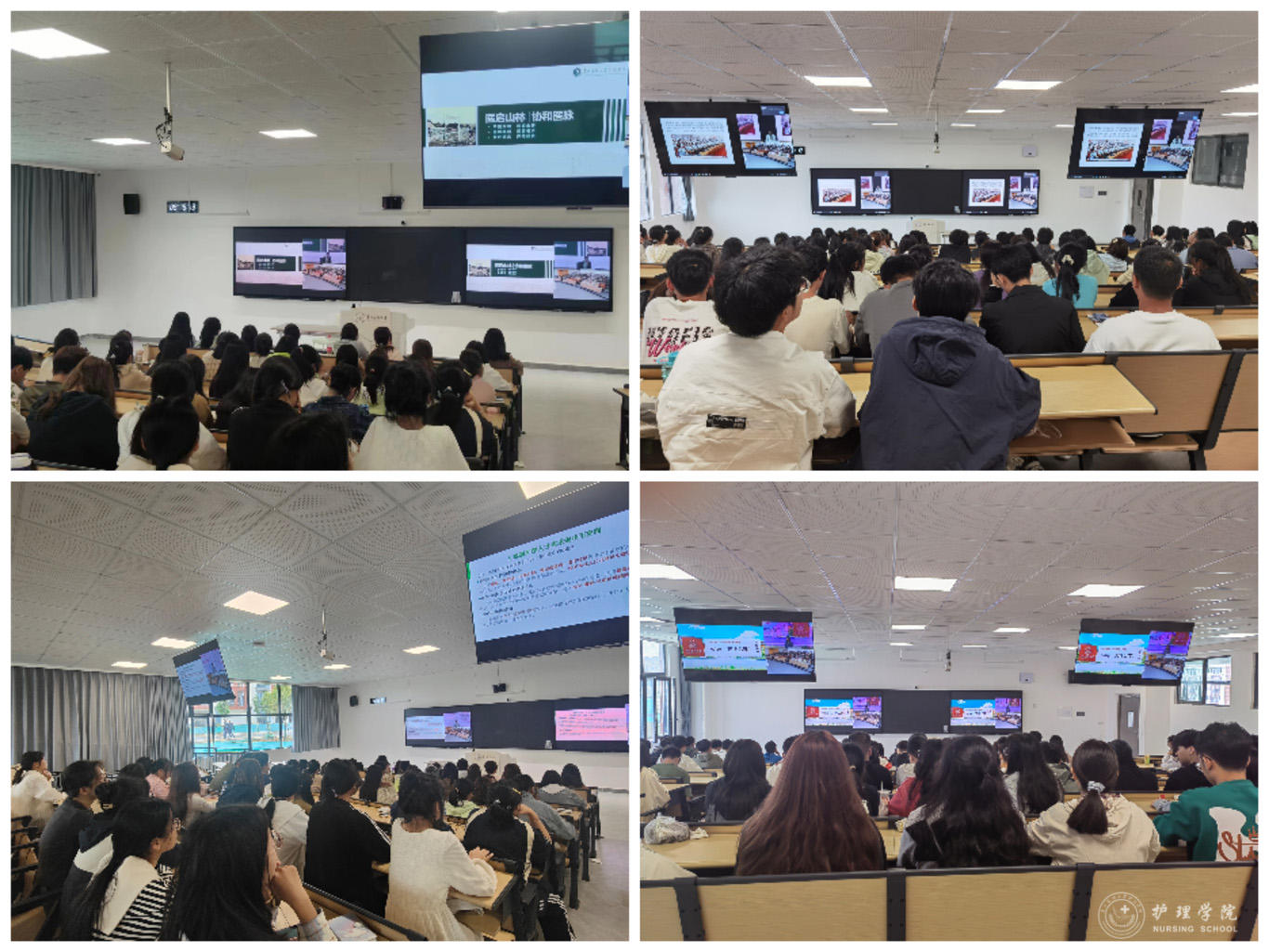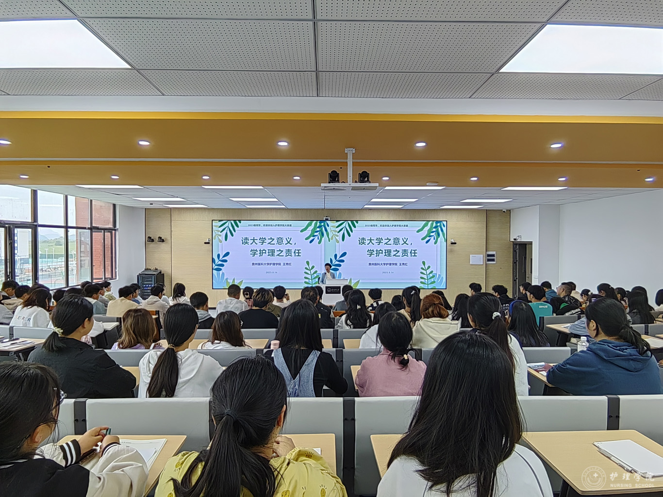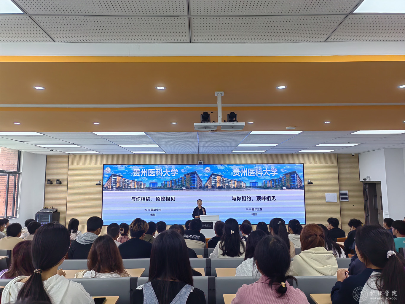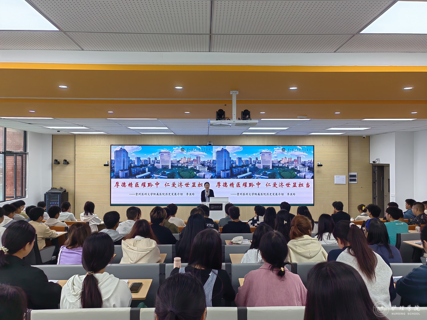 李亚玲以《厚德精医耀黔中 仁爱济世显担当》为题,分别从allwincity万象城官方网站附属医院历史沿革、学科及科室建设、科研发展等三个方面为同学们介绍了附属医院的发展之路,讲述了贵医人、护理人历次危难面前勇担使命、负重拼搏的动人事迹。她强调,护理学以往的成就令人瞩目、发展的未来无比宽广,护士职业过去的成绩无比辉煌、进步的前景充满光明,希望同学们志存高远,矢志进步,扎实学习专业知识和专业本领,提升科研能力和科研思维,早日成为一个既有思想深度又有视野广度,既有社会责任感又有家国情怀和使命担当的贵医护理人。
