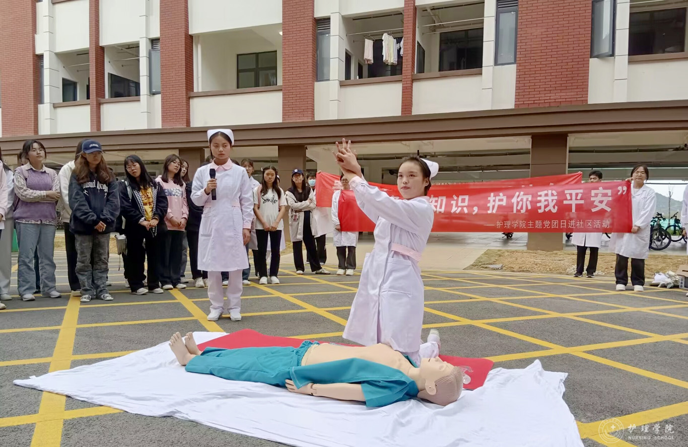 为了帮助护生了解心肺复苏急救知识,进一步加快学生社区化建设,allwincity万象城官方网站于10月18日16点在云漫湖校区临床组团C4栋学生社区一楼开展了“学急救知识,护你我平安”主题党团日进社区活动。学院团委副书记王晓玲、学生管理科副科长毕丽、辅导员刘妍、李茂盛、黄颖、孔苗参加了此次活动,活动由护理技能协会组织。