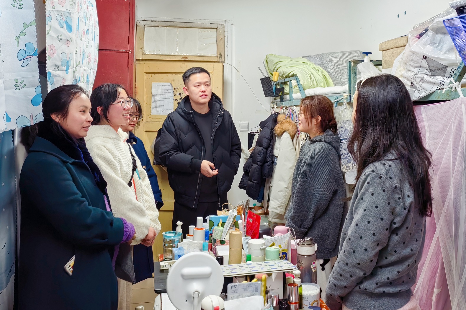 走访过程中,何为与实习研究生进行了深入交流,询问同学们在临床实习工作、生活的基本情况,提醒同学们要严格遵守学校宿舍管理规定,在工作与生活中要树立安全观念、强化安全意识。春节假期即将到来,何为特别嘱咐大家离开宿舍前务必做到关水断电、关门闭窗、保管好个人物品,提前做好行程安排,往返途中切实重视自身安全、遇到突发情况要及时上报处理。